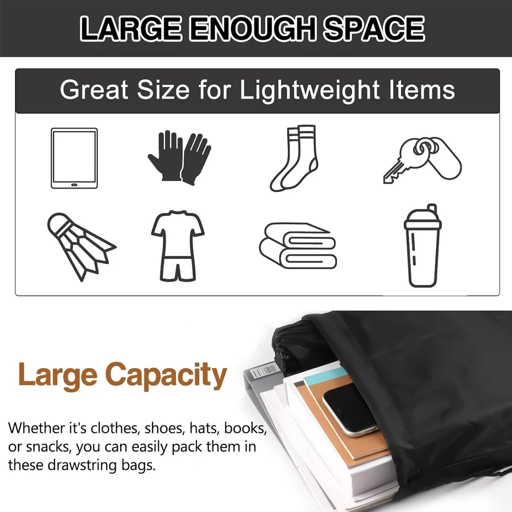 4. Sufficient Capacity : drawstring gym bag can hold a range of items including clothes, shoes, hats, footballs, basketball, books, snacks, daily necessities etc. Basically satisfy your short trip