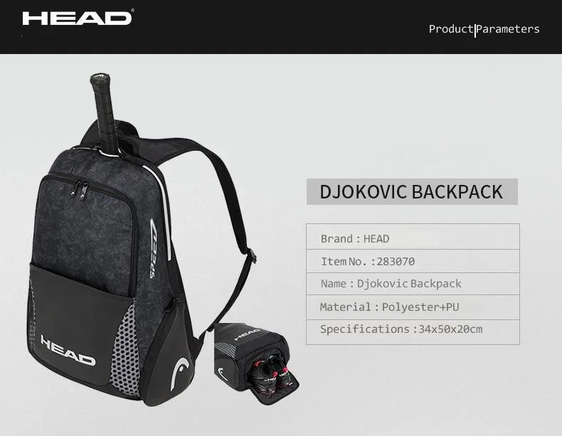 2024 HEAD Tennis Backpack Bag 2 Racquets Tennis Rackets Backpack Tennis Sports Tenis Raquete Bag Men's Tenis Bag Men Tenis Sport