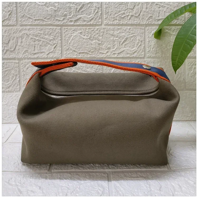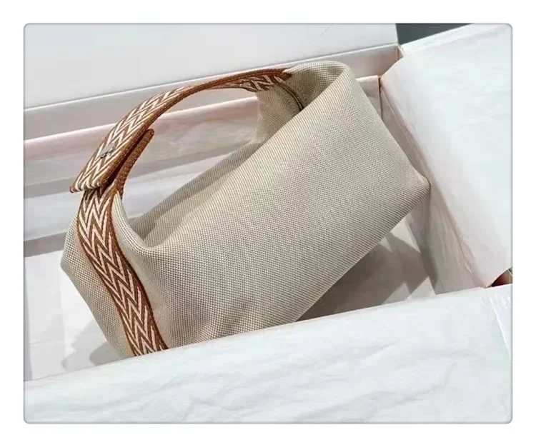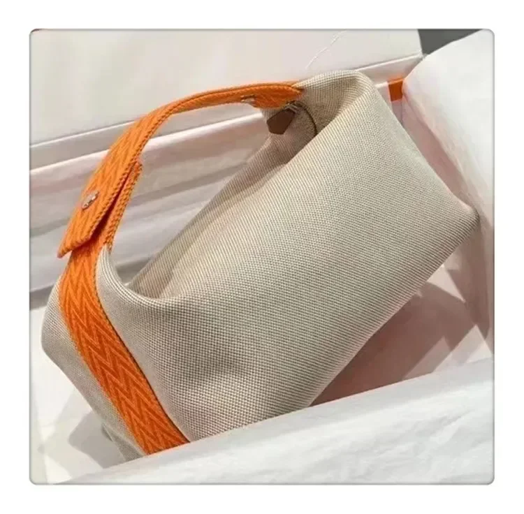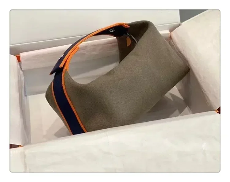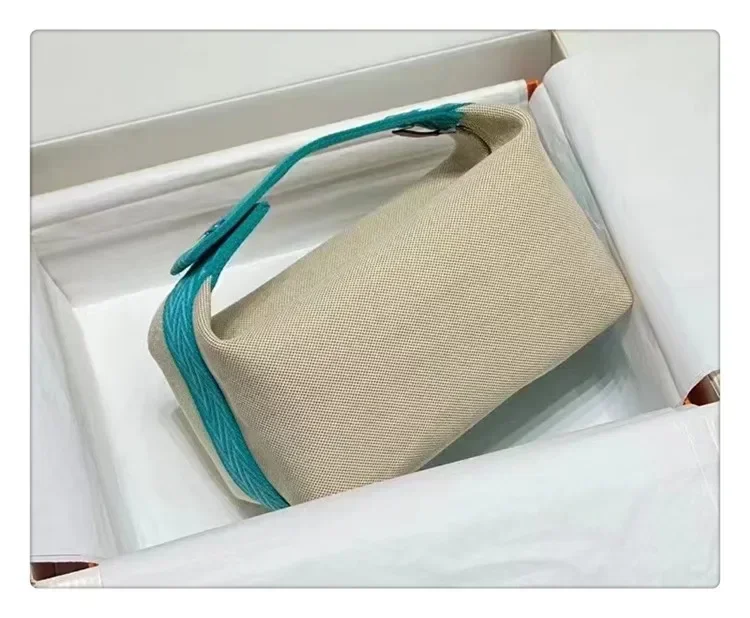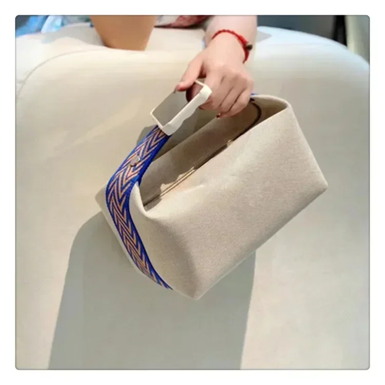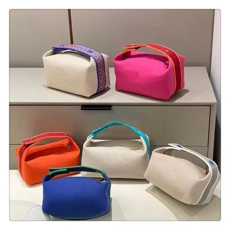 2024 New Large Capacity Canva Makeup Bag Soft Texture Fashionable Women's Shoulder Bag Color Blocking Handbag From China
