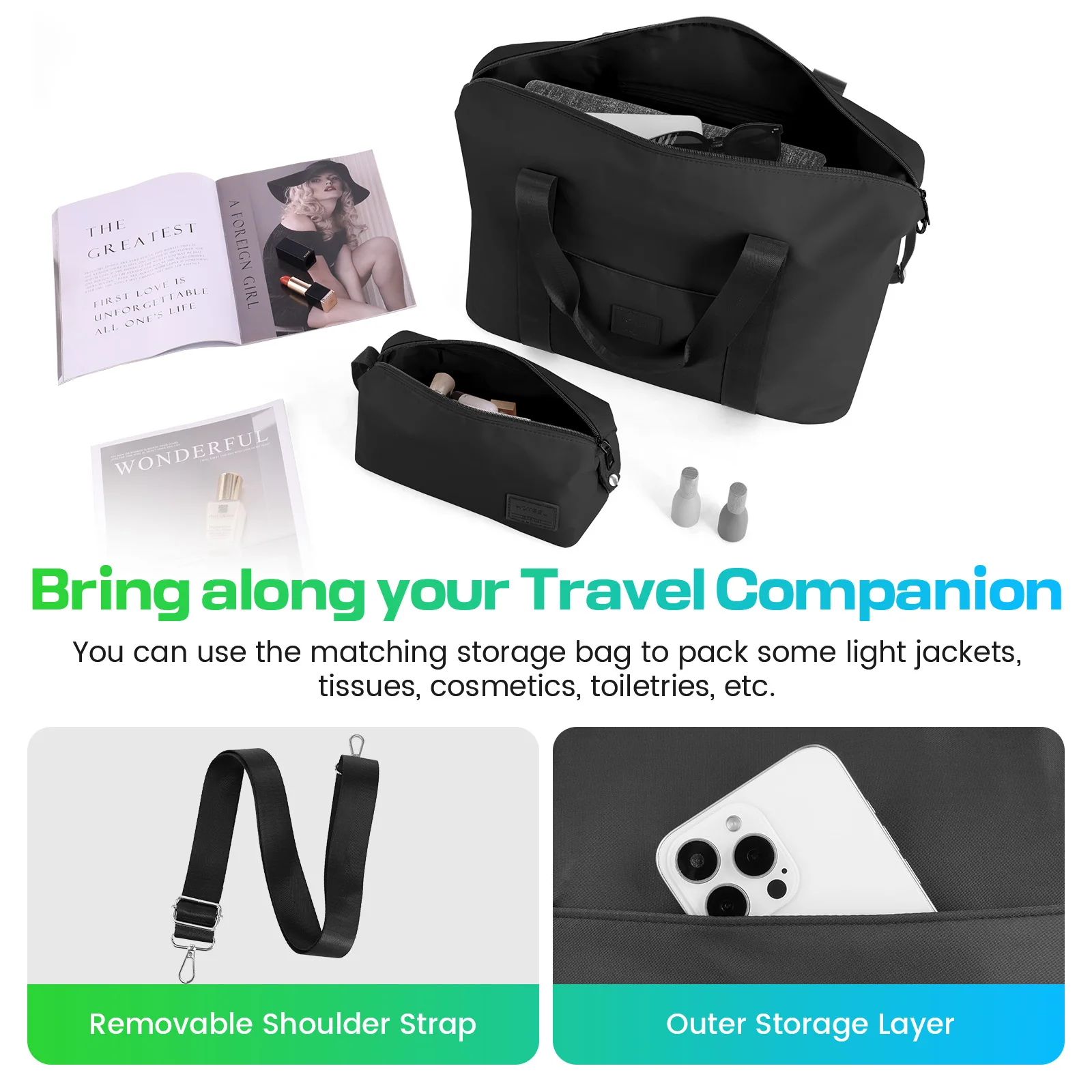 【Versatile Storage】Spacious duffel bag ideal for 2-3 day trips with dedicated waterproof compartments. Coordinating toiletry bag keeps personal care items organized. Multiple storage sections ensure efficient packing and easy access to essentials.