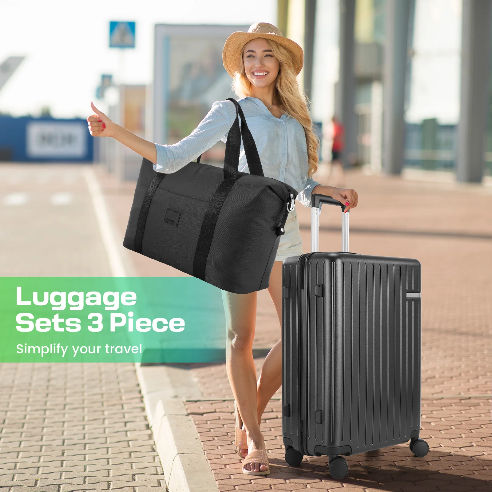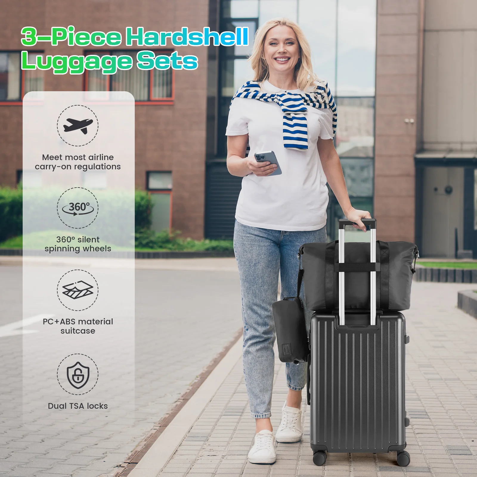 3 Piece Luggage Set with TSA Lock, Hardshell Carry-on Suitcase with Spinner Wheels, Travel Collection with Duffel & Toiletry Bag