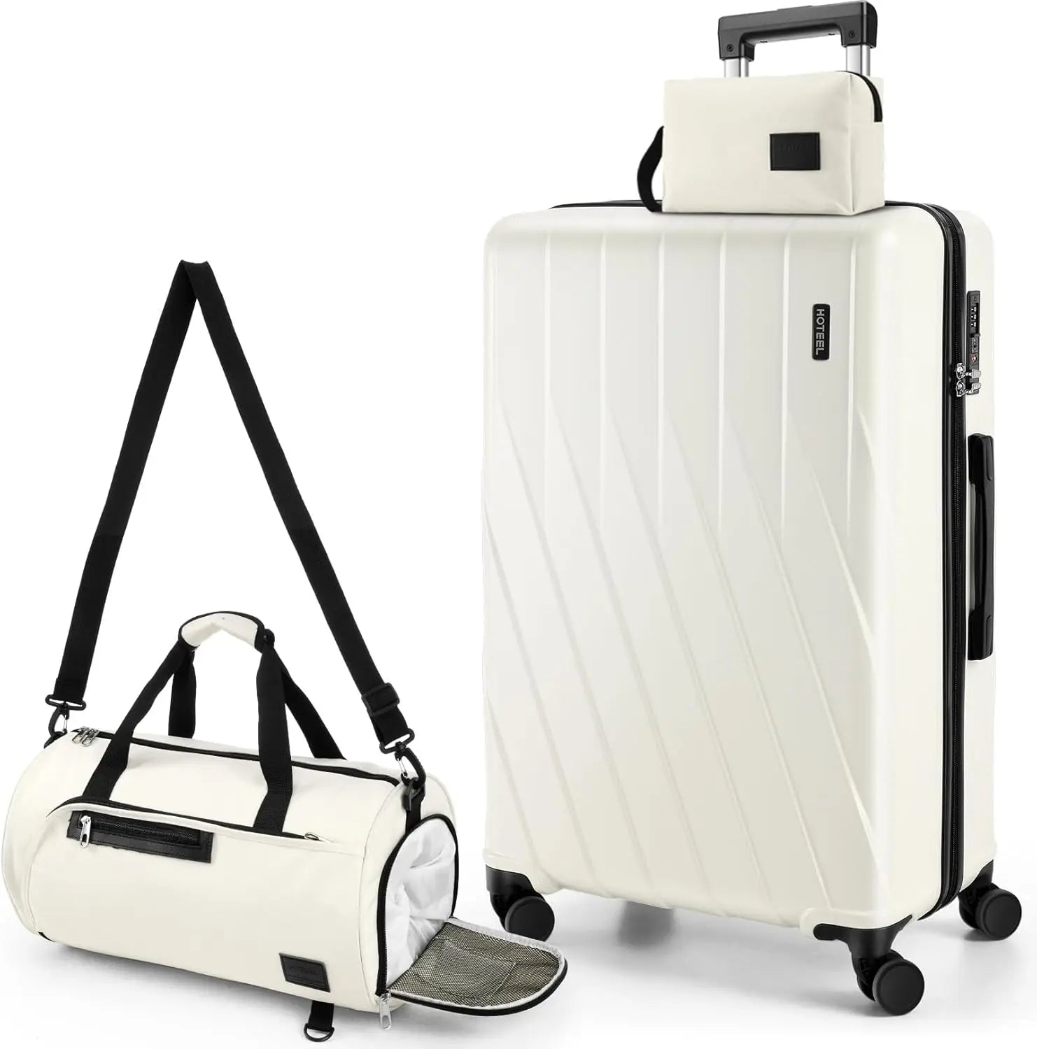 [Premium 3-Piece Luggage Set & 4-Year Warranty Service]Hoteel 3 piece luggage set include a 20-inch carry on luggage, multi-function fitness bag, and a toiletry bag. You can freely combine them to meet different travel needs.✔️Hoteel suitcase set includes 4-Year Limited Warranty and 90-day standard return period, and you can always contact us to replace any damaged parts, such as wheels, handles. Contact us on if you need help for your purchase.