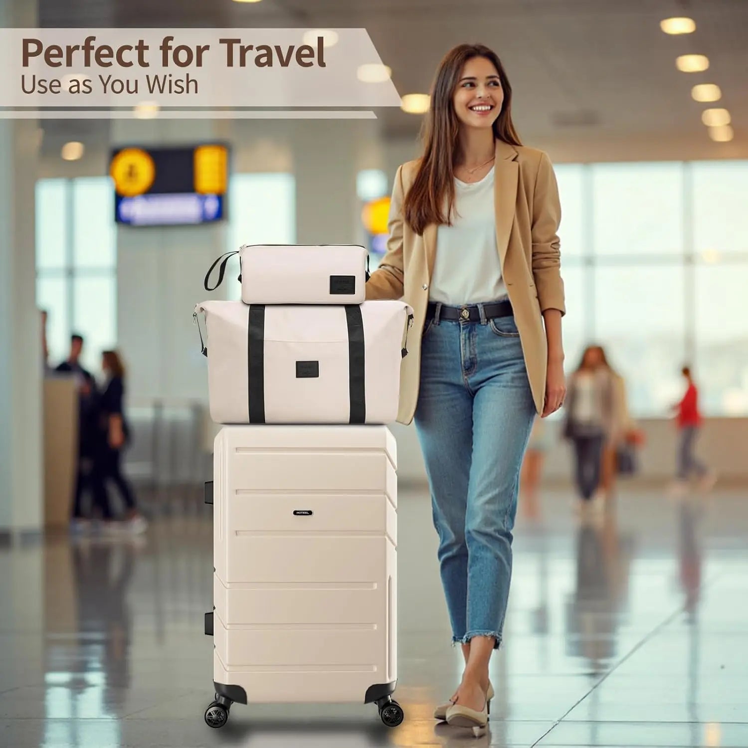 [Versatile 3-Piece Travel Set] Luggage sets 3 piece features a expandable 20 inch carry on luggage, a matching duffle bag, and a toiletry bag. The carry-on expands up to 20% while complying with airline size requirements, making it ideal for short trips. Enhanced with a TSA-approved lock, ensuring smooth security and safeguarding your belongings.