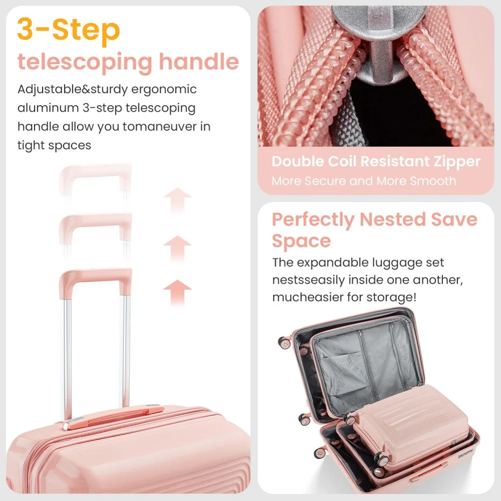 --4-Piece Versatile Set: Includes 14", 20", 24", and 28" suitcases. The 24" & 28" are expandable, providing 25% extra storage for longer trips.