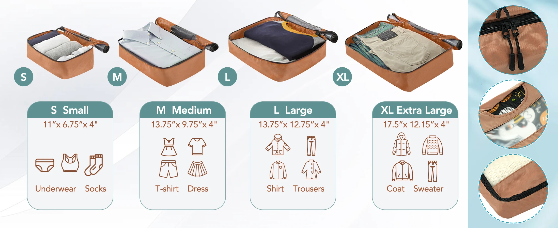 - 4 packing boxes keep your clothes, toiletries, and other items separated, making the interior more organized. 24-inch and 28-inch suitcases can be expand with 20% extra space to accommodate more souvenirs. 4 suitcases can be nested inside each other to save space for your convenience.