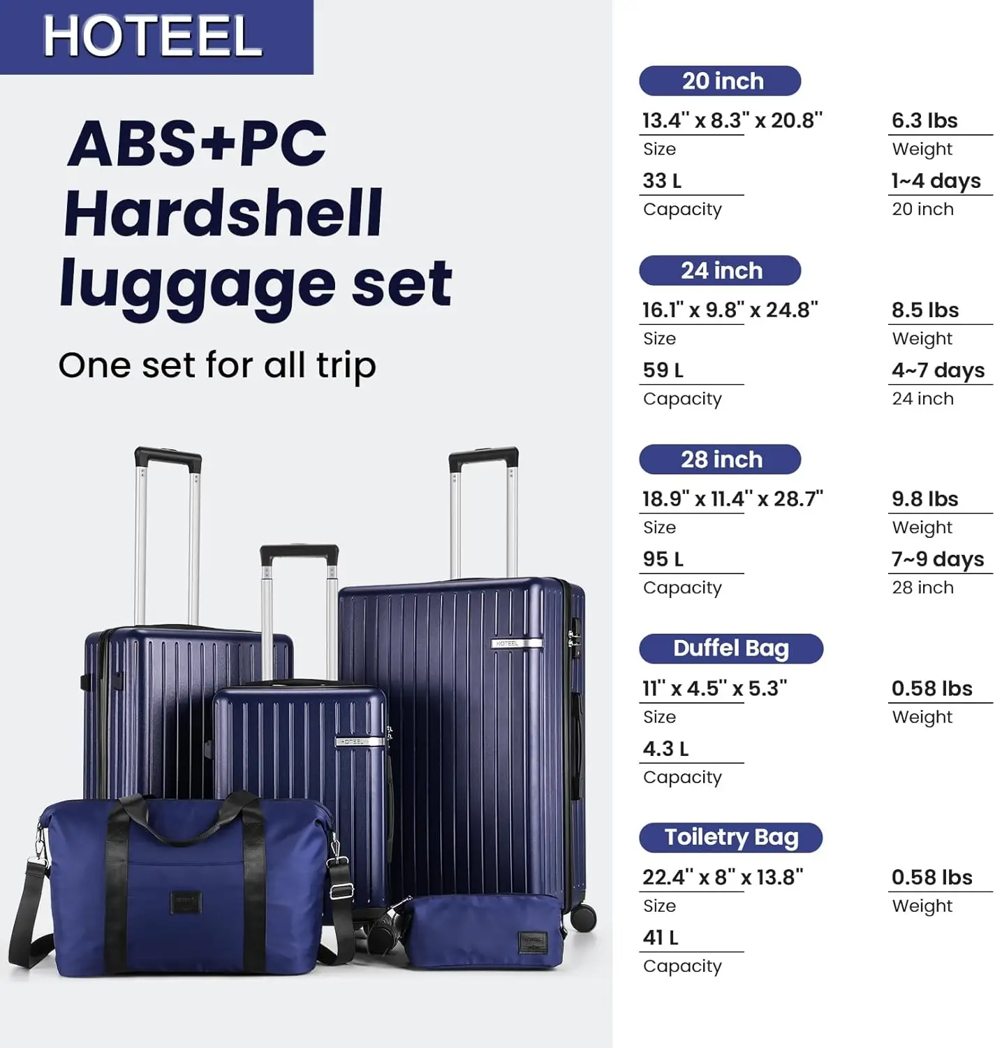 5 Piece Carry On Luggage Sets ABS PC Suitcases With Wheel Hardshell 20/24/28 inch Luggage Travel Case With Duffel Bag Travel Bag