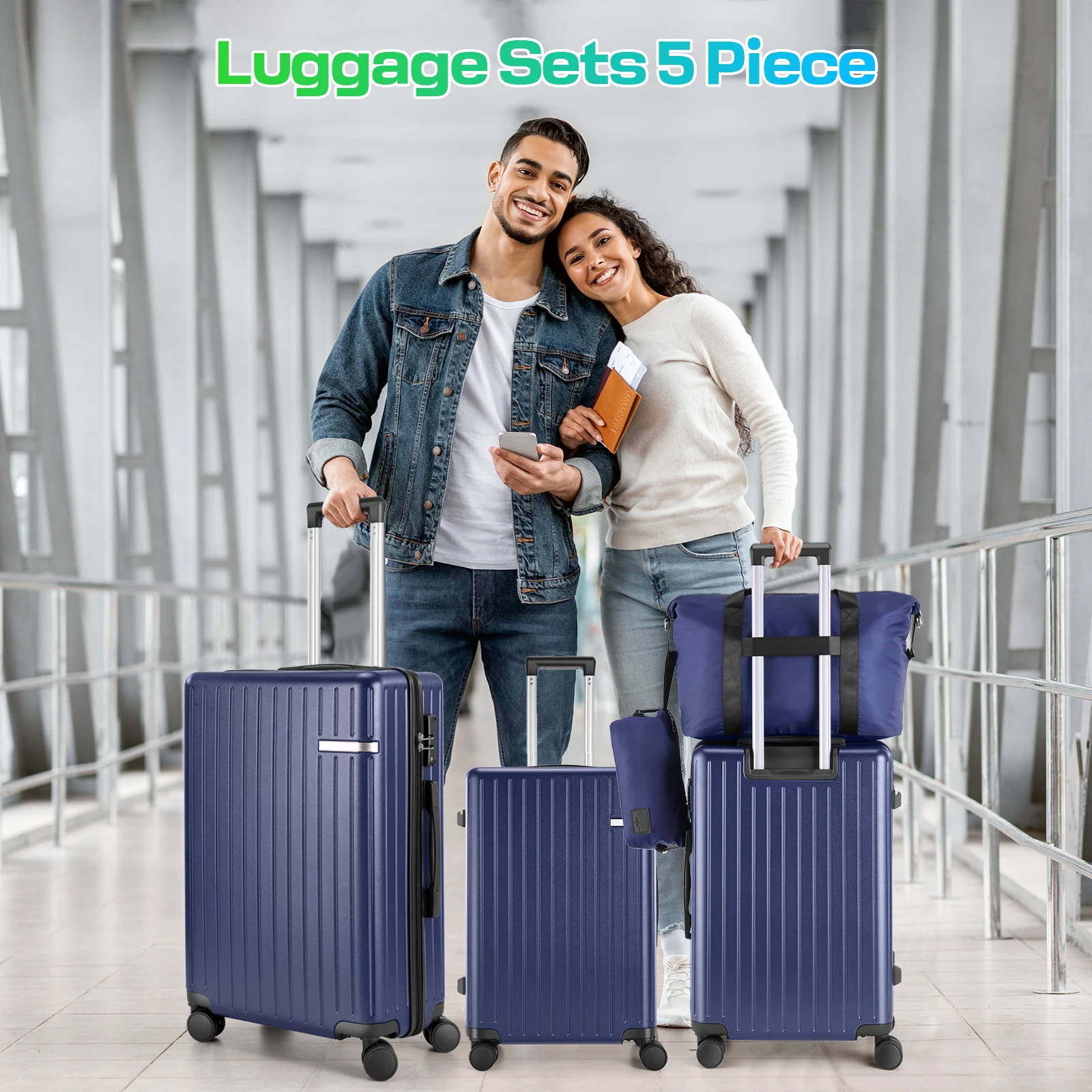 5 Piece Luggage Set with TSA Lock, Expandable Hardshell Suitcase Collection with Spinner Wheels, Travel Cases with Duffel & Toil