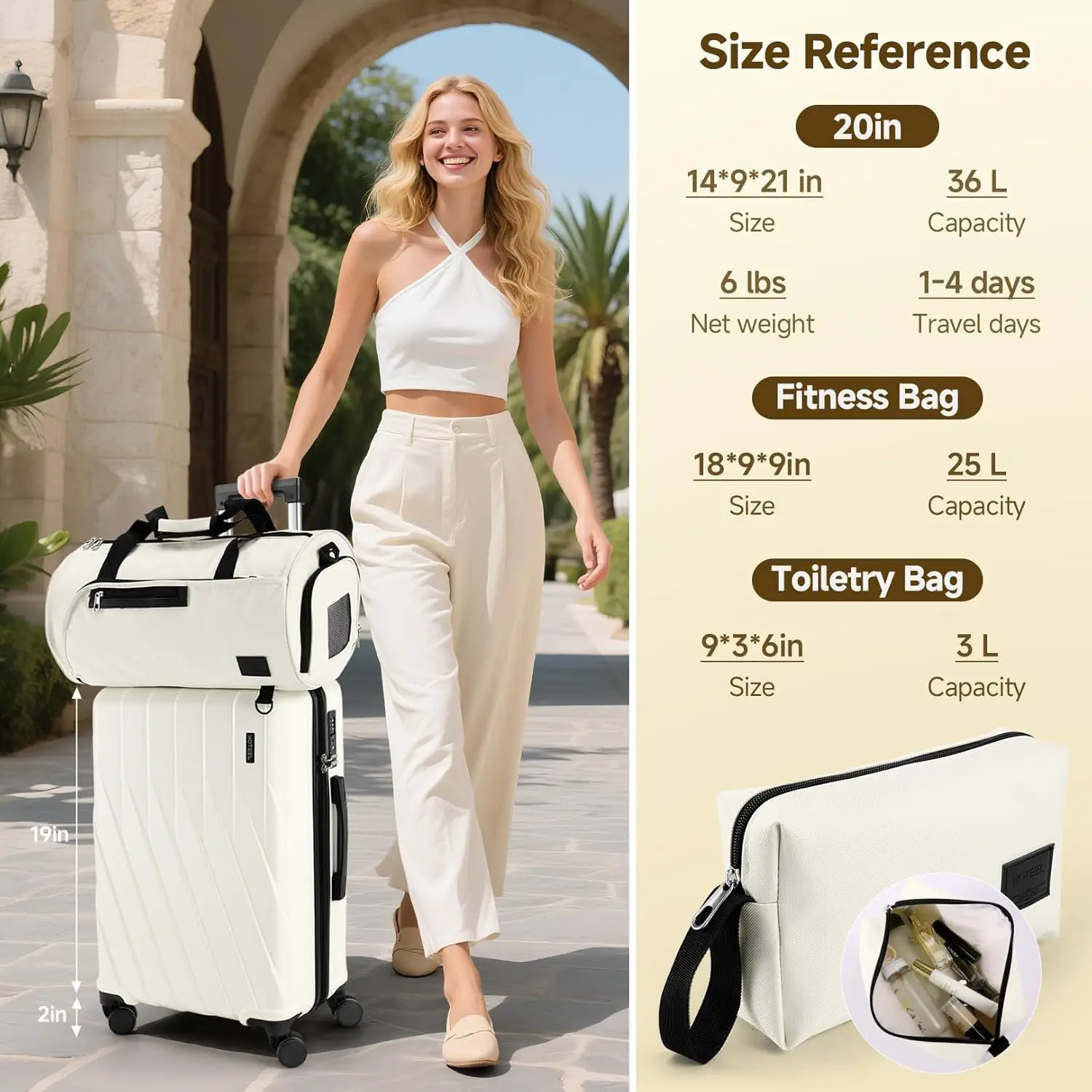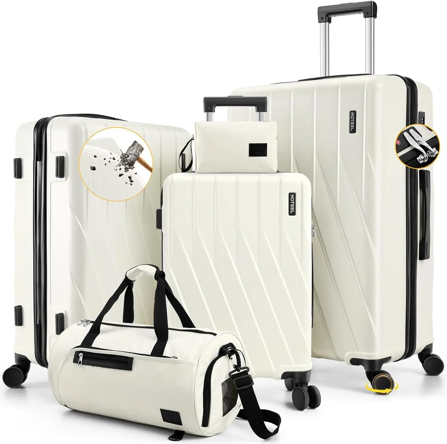 [Premium 5-Piece Luggage Set & 4-Year Warranty Service]Hoteel 5 piece luggage set includes 20" carry on luggage, a 24'' checked suitcase, a 28'' large suitcase, multi-function fitness bag, and a toiletry bag. You can combine them freely to meet the needs of family or friends traveling and long-distance travel. ✔️Hoteel suitcase set includes 4-Year Limited Warranty and 90-day standard return period, and you can always contact us to replace any damaged parts, such as wheels, handles. Contact us on if you need help for your purchase.