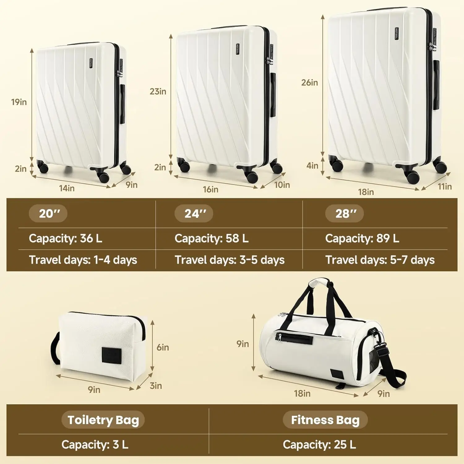 5 Piece PC Hardshell Luggage Set Travel Suitcase With Spinner Wheel TSA Lock 20/24/28" Suitcase Fitness Duffel Bag Cosmetic Bag