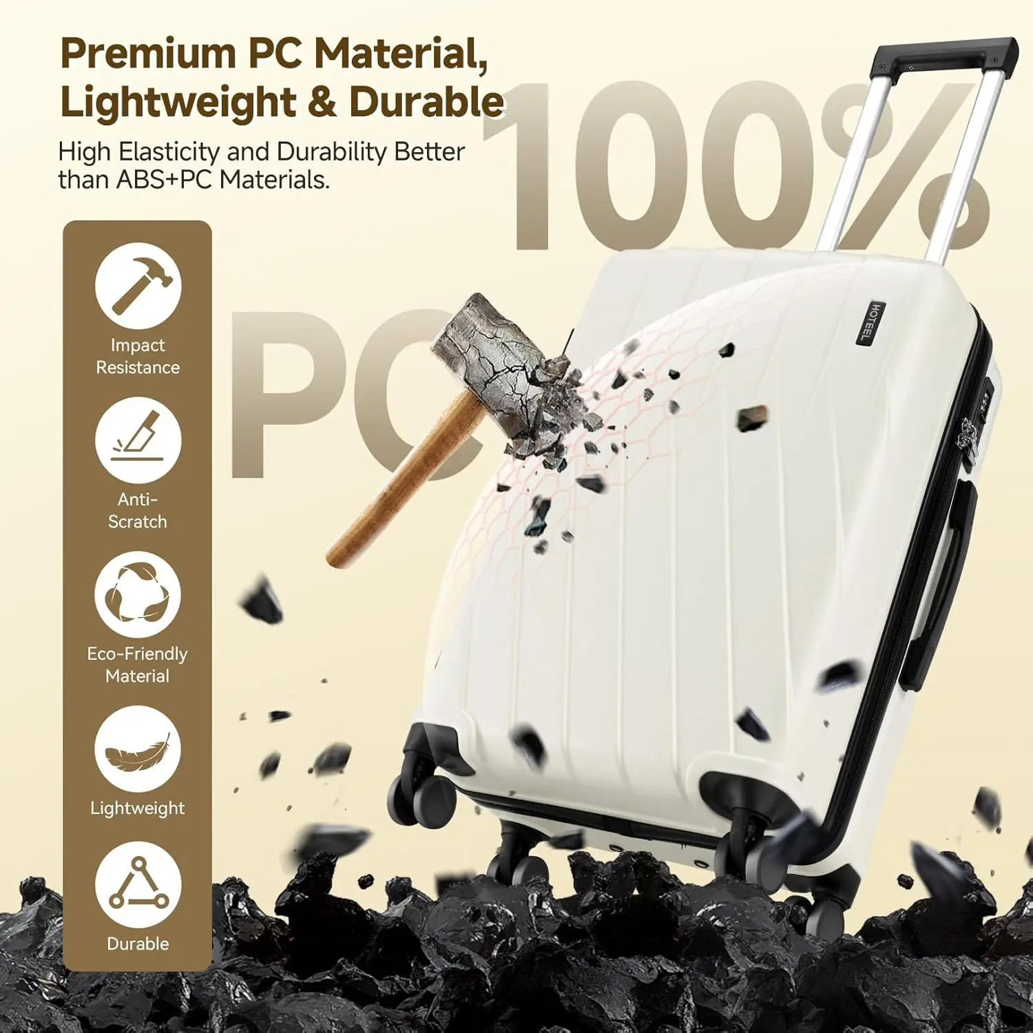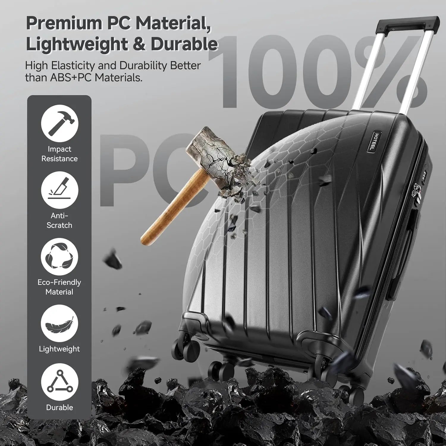 [100%PC Extra Durable Suitcase]This Hoteel hardside luggage is made of high-quality 100%PC materials, which is known for its lightweight, high elasticity and durability, maintaining maximum reliability even under violent impacts and scratches, keeping your luggage looking good and long-lasting after your trip. Better than ABS+PC and ABS materials. The lightweight luggage is equipped with three-stage adjustable telescopic handle and top/side handles for comfortable use.