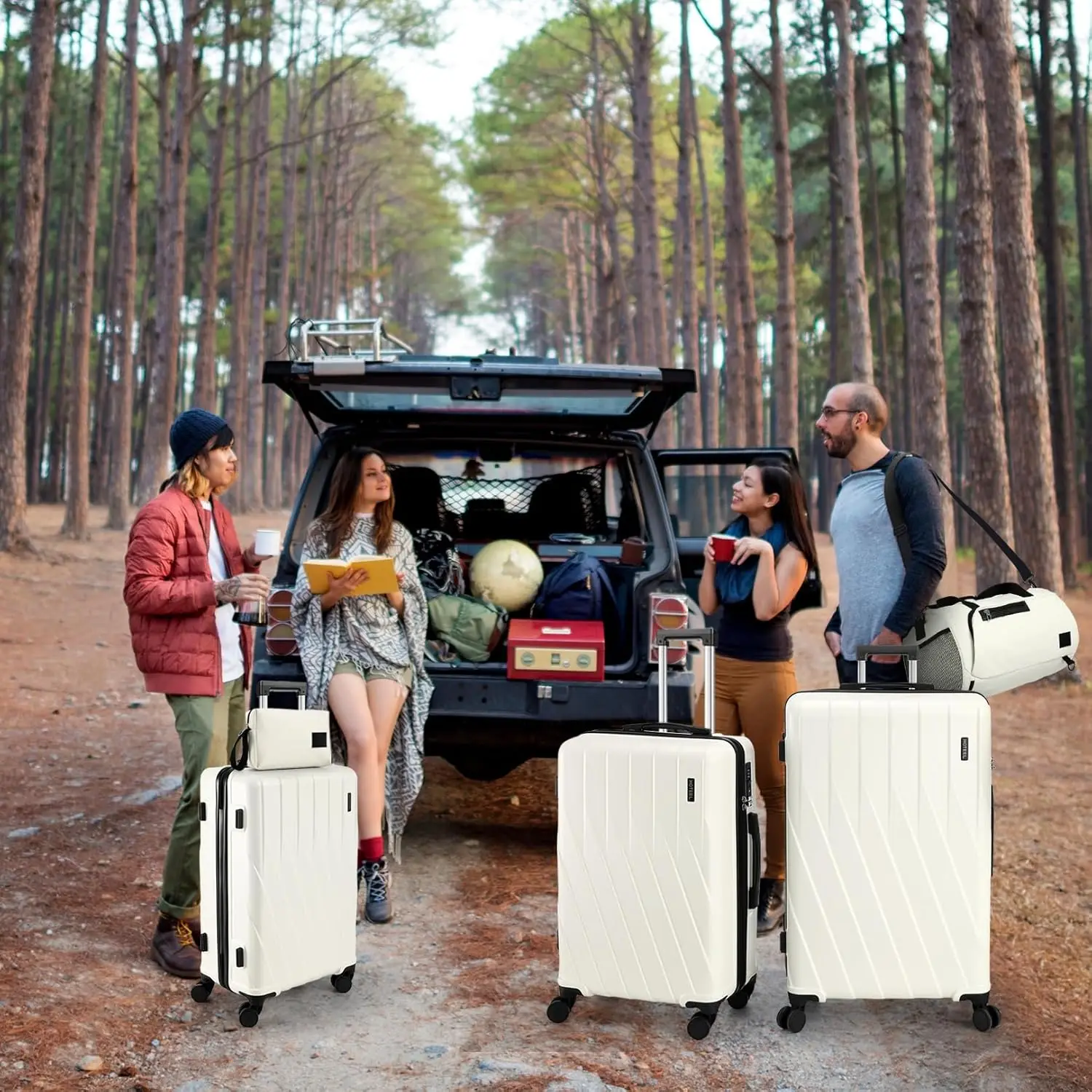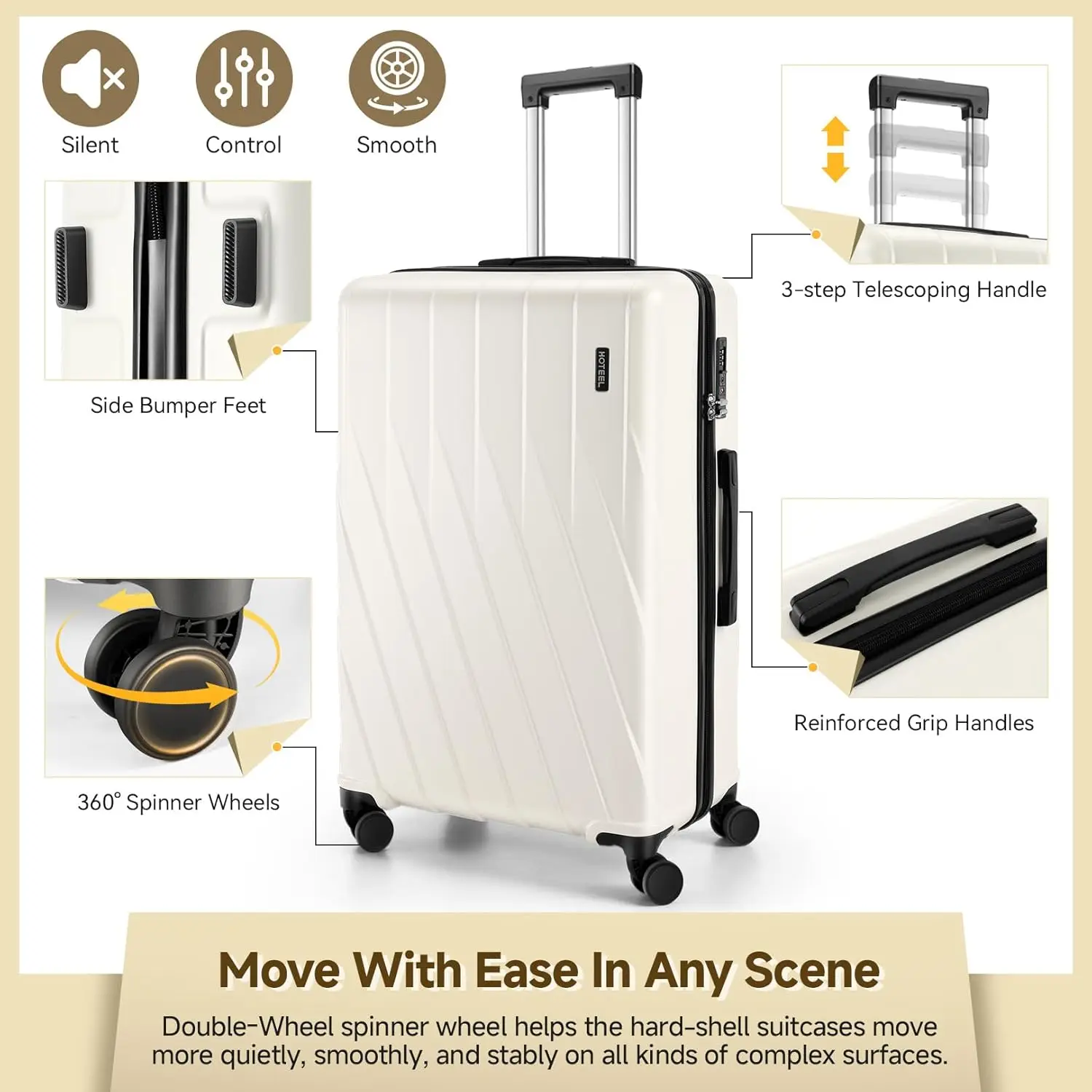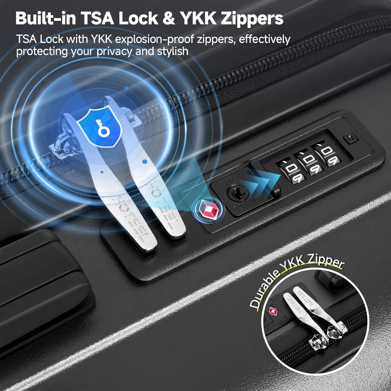 [Premium 5-Piece Luggage Set & 4-Year Warranty Service]Hoteel 5 piece luggage set includes 20" carry on luggage, a 24'' checked suitcase, a 28'' large suitcase, multi-function fitness bag, and a toiletry bag. You can combine them freely to meet the needs of family or friends traveling and long-distance travel. ✔️Hoteel suitcase set includes 4-Year Limited Warranty and 90-day standard return period, and you can always contact us to replace any damaged parts, such as wheels, handles. Contact us on if you need help for your purchase.