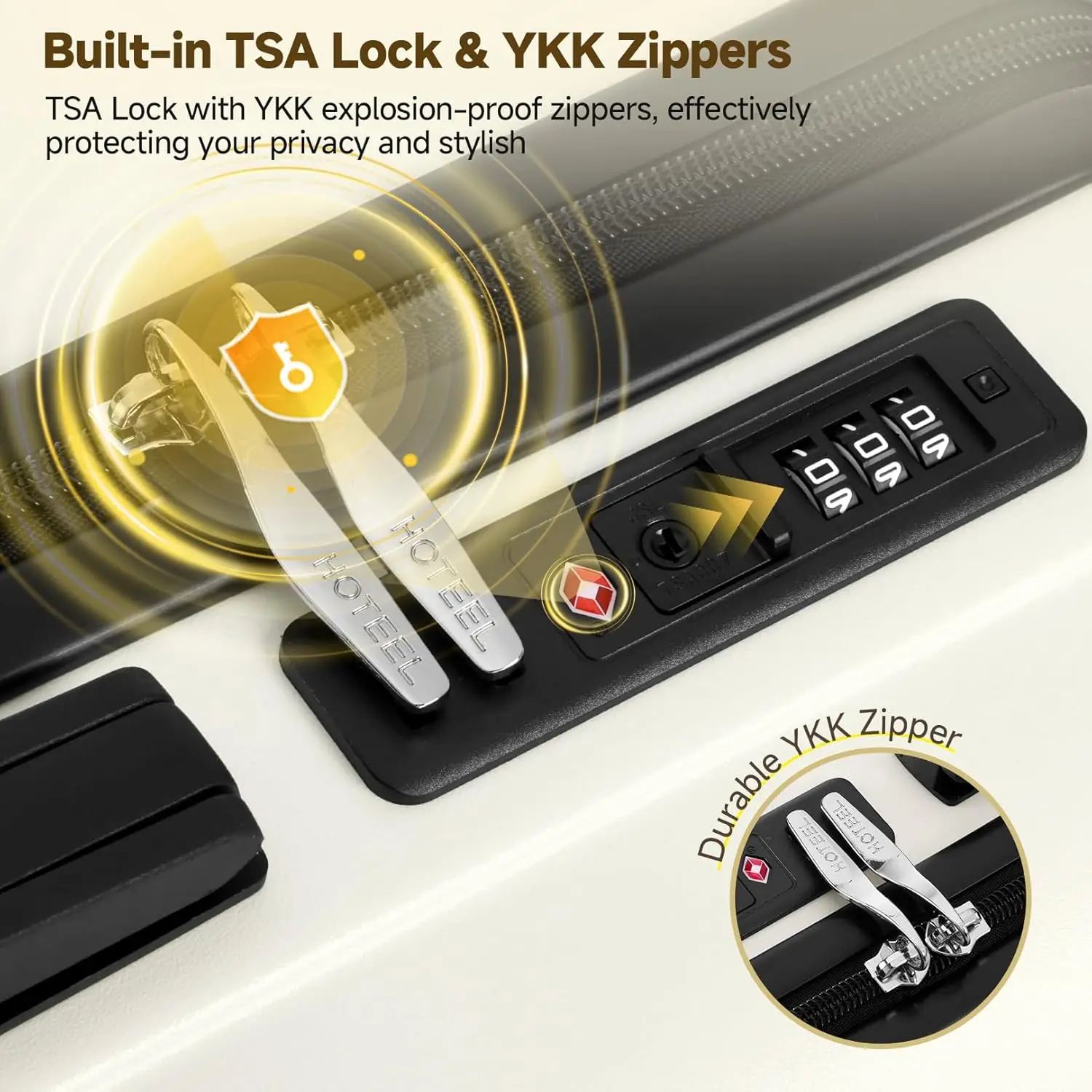 [YKK Explosion-Proof Zipper & TSA lock] The travel suitcases with wheels is equipped with YKK explosion-proof zippers, which have passed 3,000 durability tests and resistant to be punctured by sharp tools, effectively protecting your privacy and security. TSA-approved lock and fully-lined interior divider with organization pockets and waterproof compartment, ensuring that your belongings and organized during your journey.