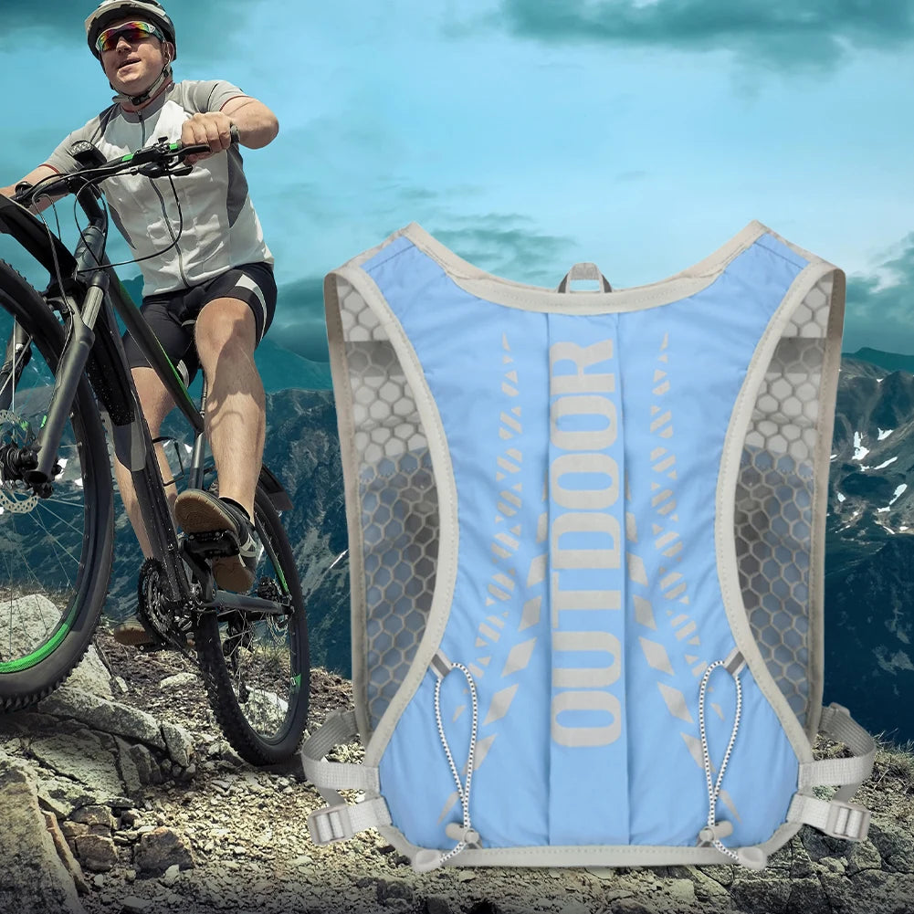 1.Stay Cool and Dry: Crafted with a blend of nylon and polyester fabrics, this hydration backpack features high-density mesh for optimal breathability and effective moisture absorption, keeping you fresh throughout your adventure.