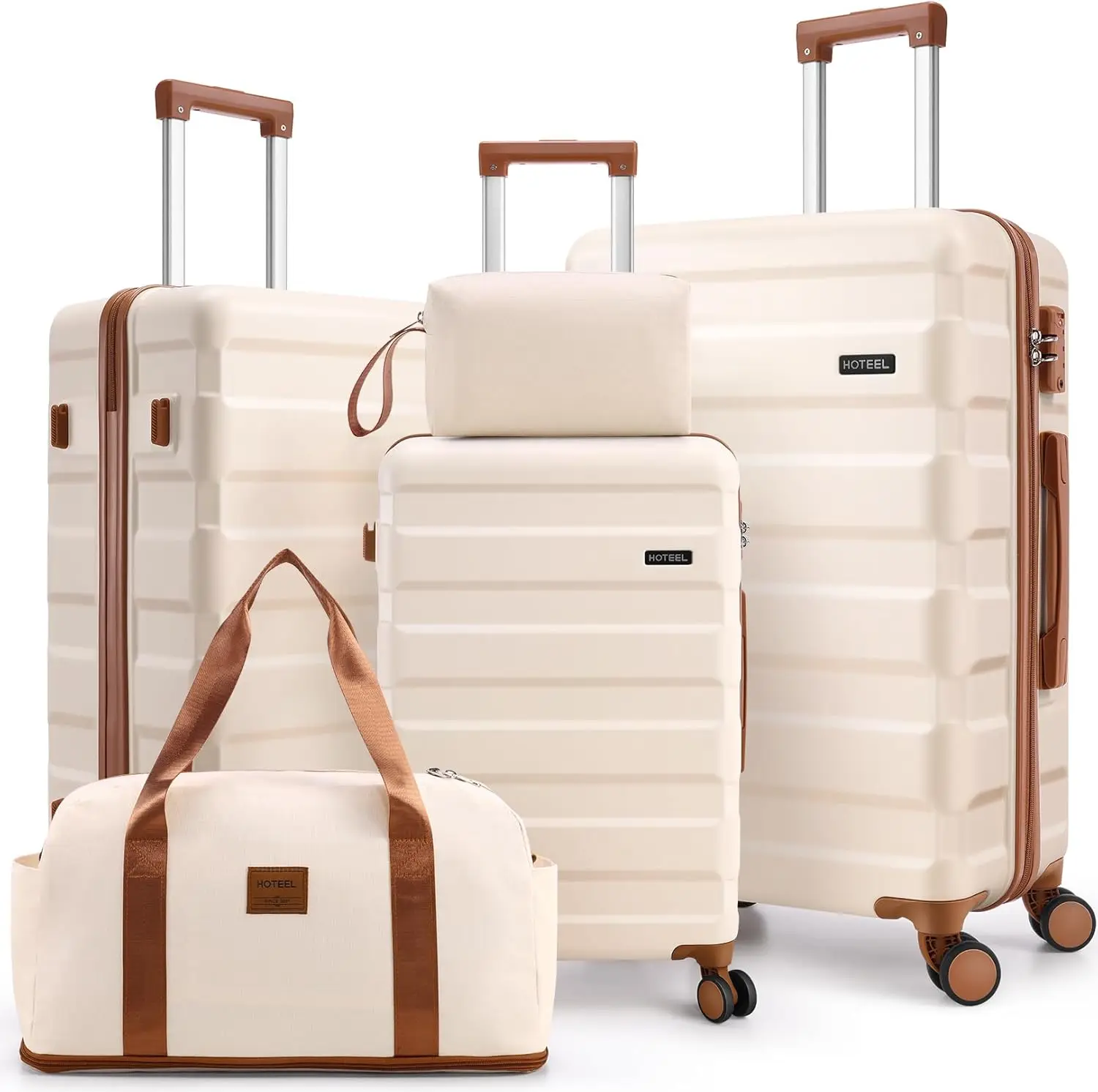 5Piece Carry On Luggage Set With Spinner Wheel ABS Hardshell With TSA Lock 20/24/28"Lightweight Suitcase Toiletry Bag Duffel Bag