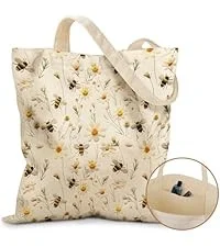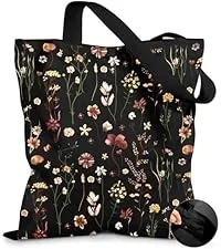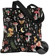 Aesthetic Tote Bag for Girls - with Magnetic Buckle and Zipper Inner Pocket for Women Lady Canvas Cotton Tote Bag