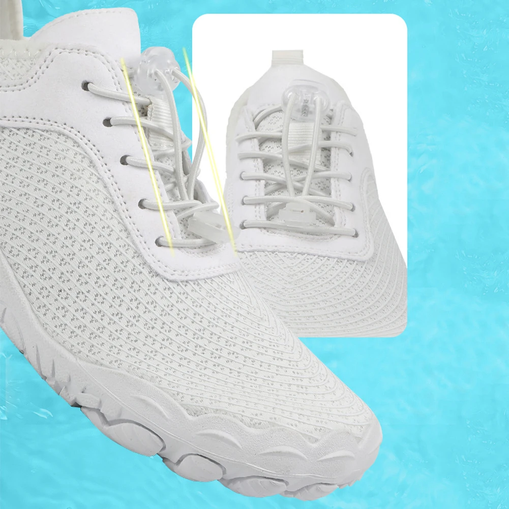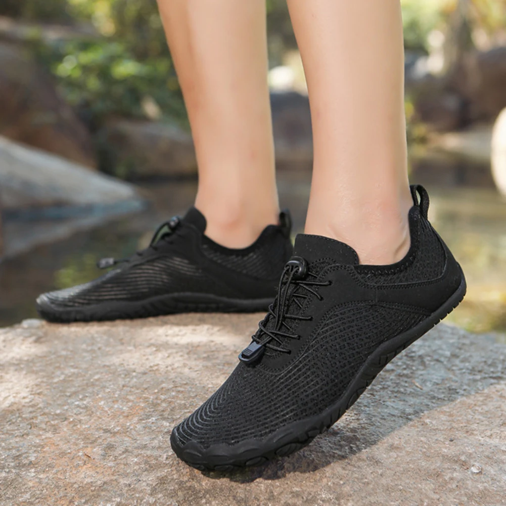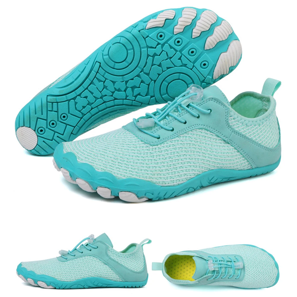 4. Water and Land Performance: Barefoot shoes have a rubber sole with drainage holes that facilitate quick water drainage and fast drying. This feature ensures that you can confidently transition between water and land without the fear of slipping or discomfort.