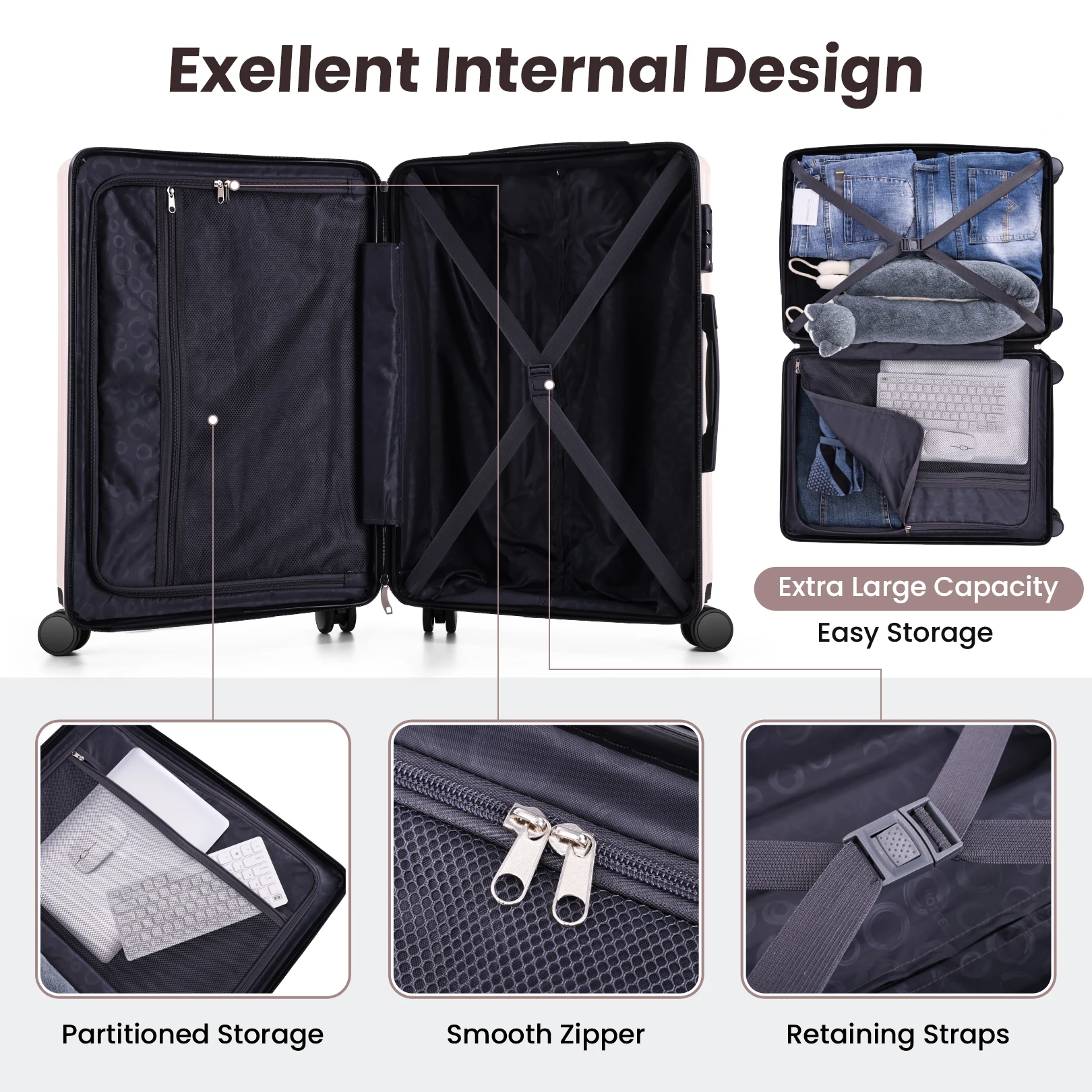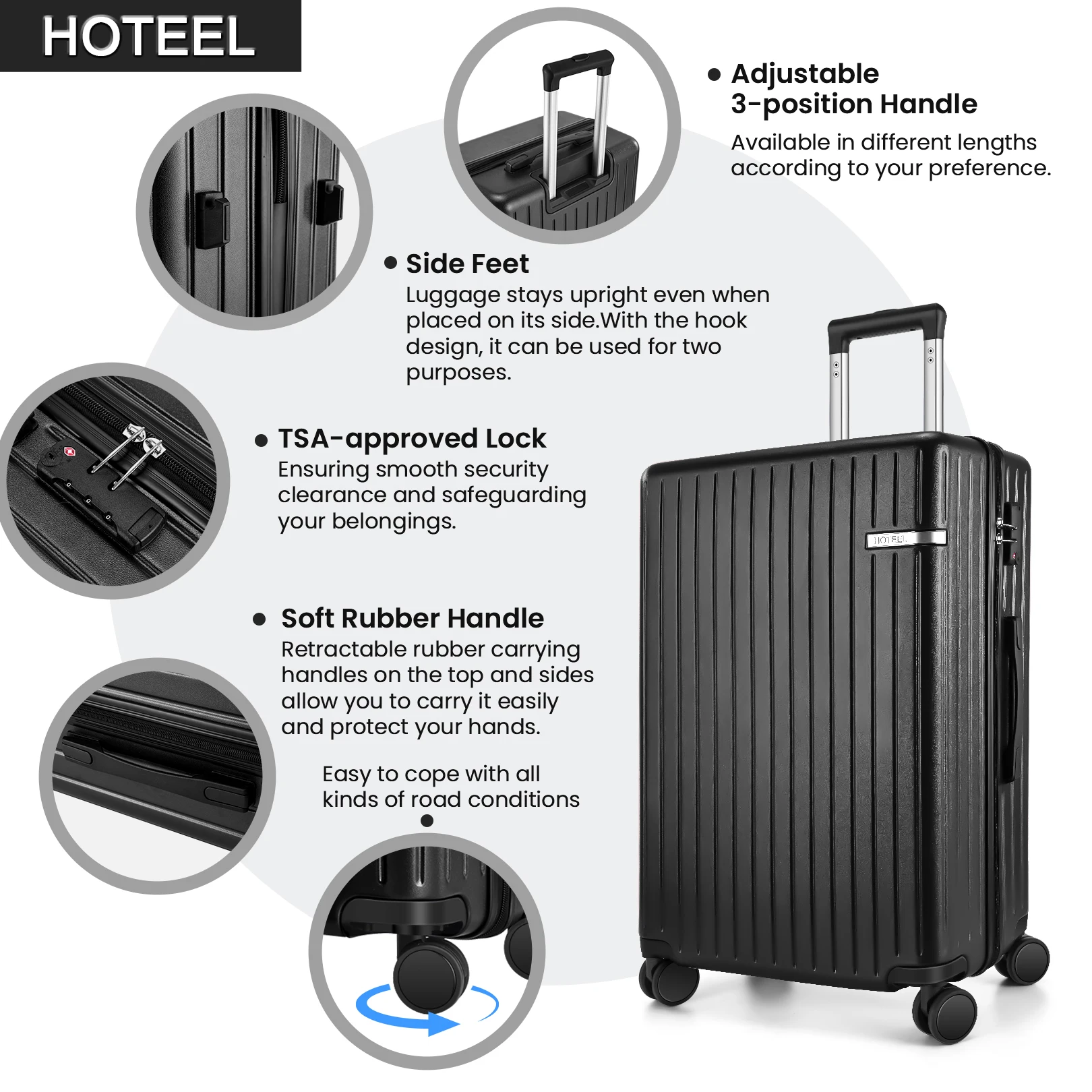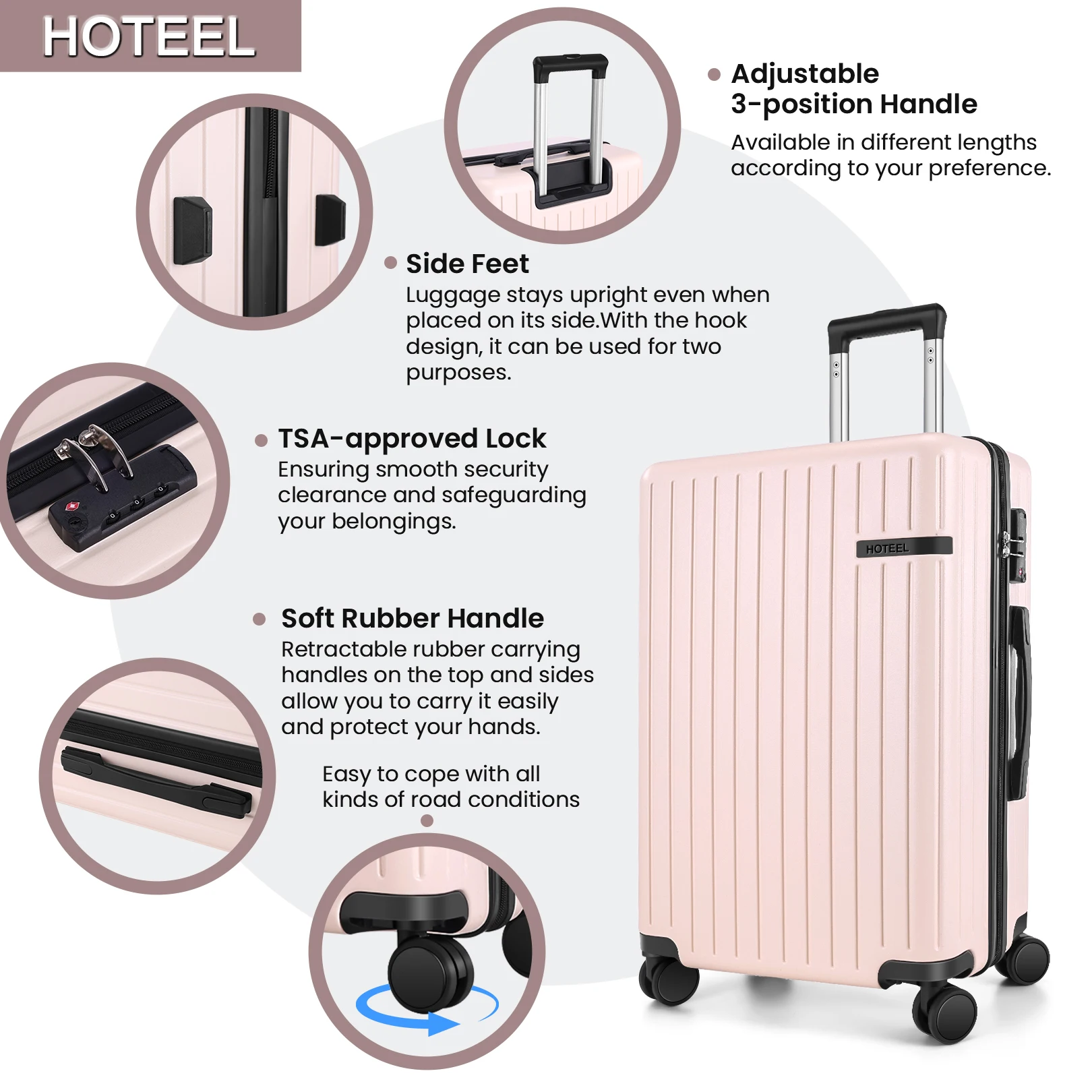 【TSA Lock】The suitcase with wheels is equipped with a TSA-approved lock, enabling damage-free rapid inspections during international travel and ensuring the security of personal belongings.