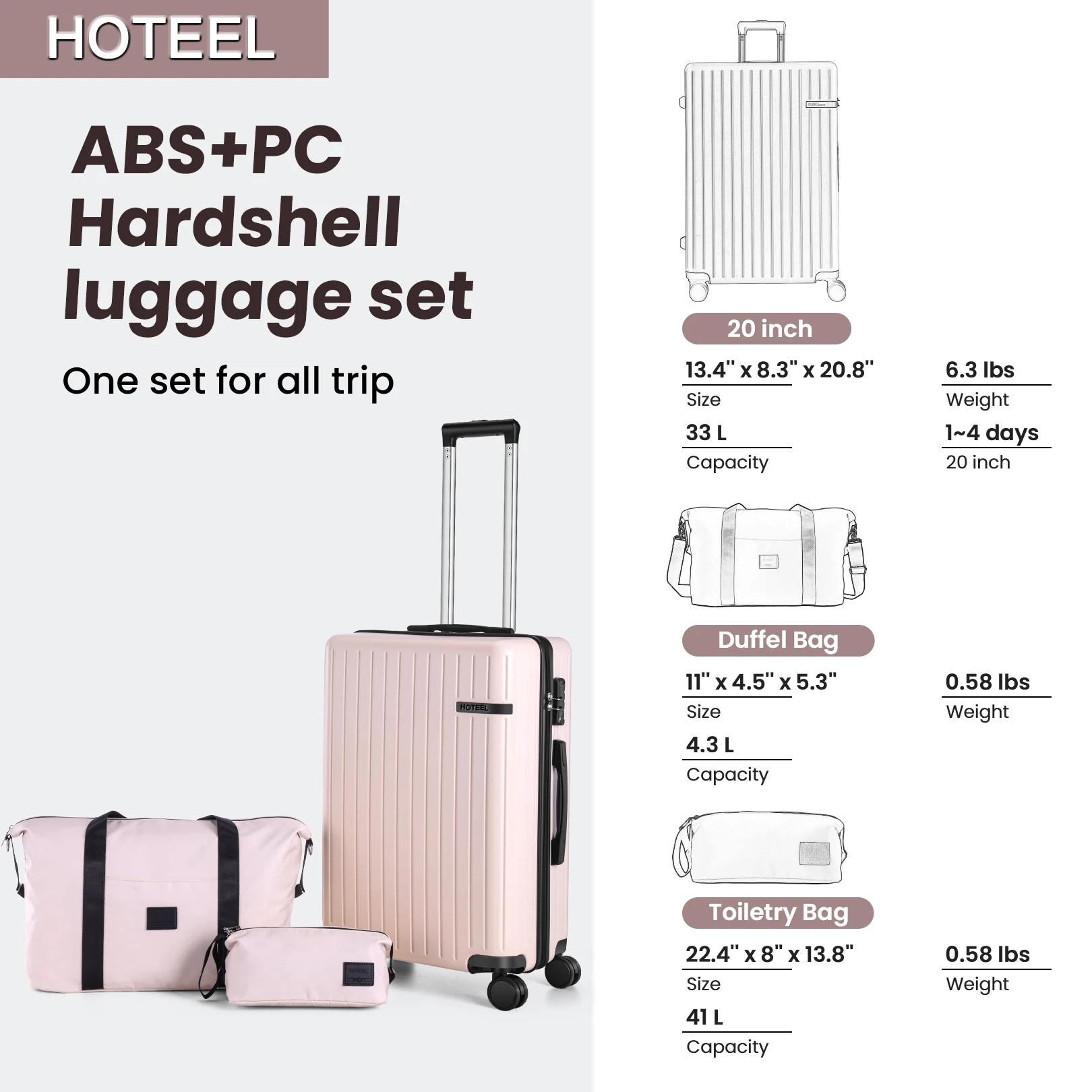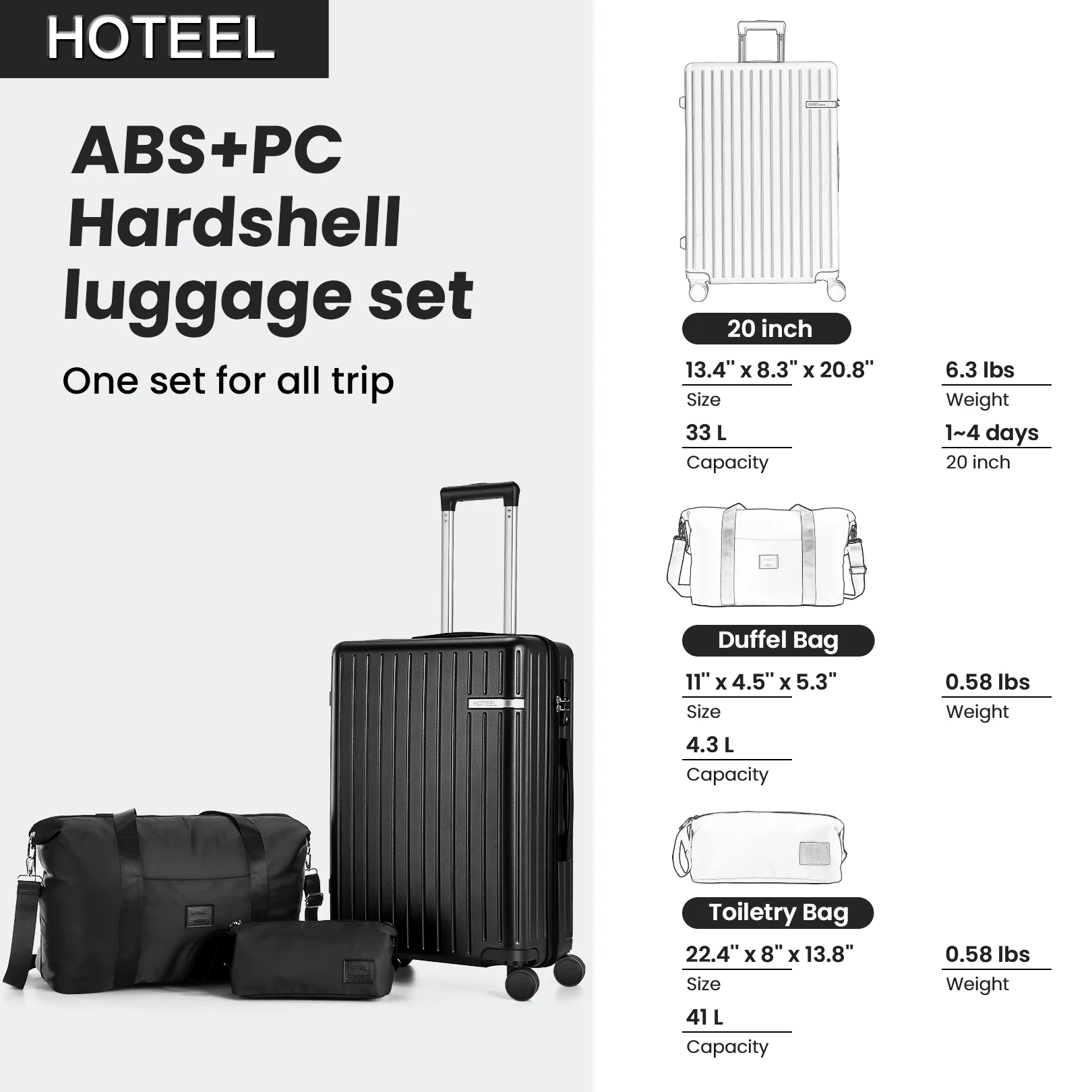 【Lightweight & Durable】Made from PC+ABS material, this hard-shell luggage set undergoes rigorous drop-test certification before leaving the factory, ensuring excellent impact resistance and durability. Weighing just 6 pounds, you can travel with it effortlessly.