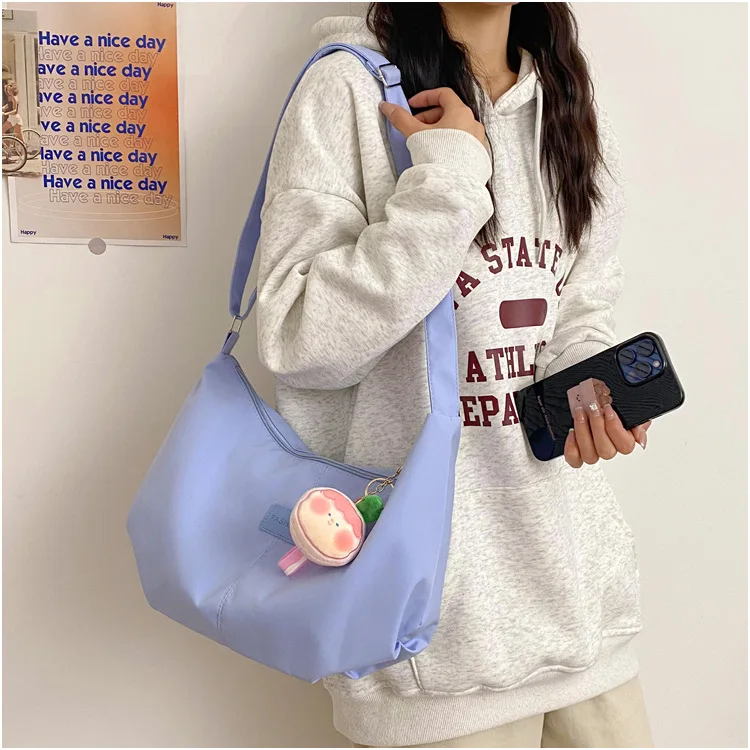 Casual Nylon Womens Shoulder Bag Korean Fashion Simple College Style Crossbody Bag Large Capacity Designer Ladies Handbag Purse