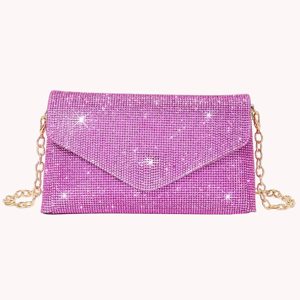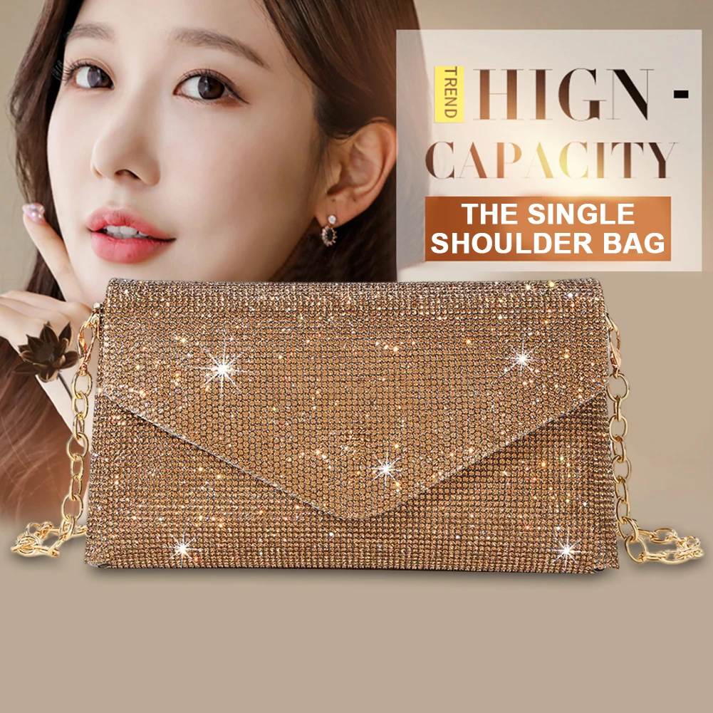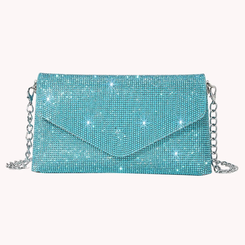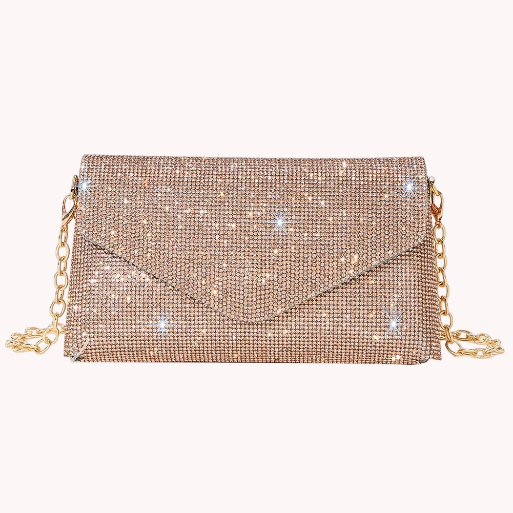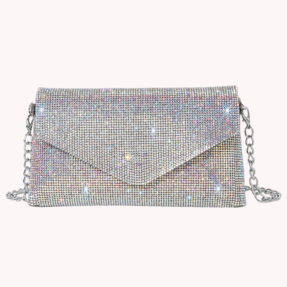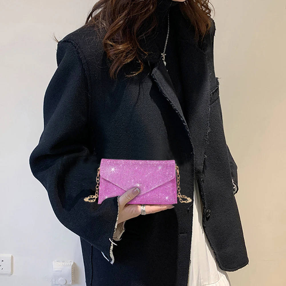 Envelope Clutch Bag Rhinestone Prom Shoulder Bag Chain PU Elegant Gorgeous Exquisite Fashion Embellished Banquet Crossbody Pack