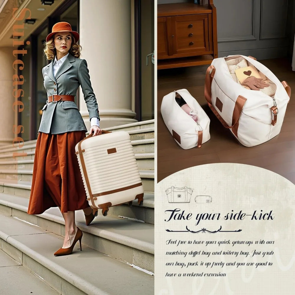 - Five piece set offers a 20’’ luggage, a 24’’ luggage, a 28’’ luggage, a weekender travel bag and a toiletry bag. Three piece sets offer two options. Option A includes a 20’’ luggage, a travel duffel bag and a toiletry bag. Option B includes a 20’’ luggage, a backpack and a toiletry bag.