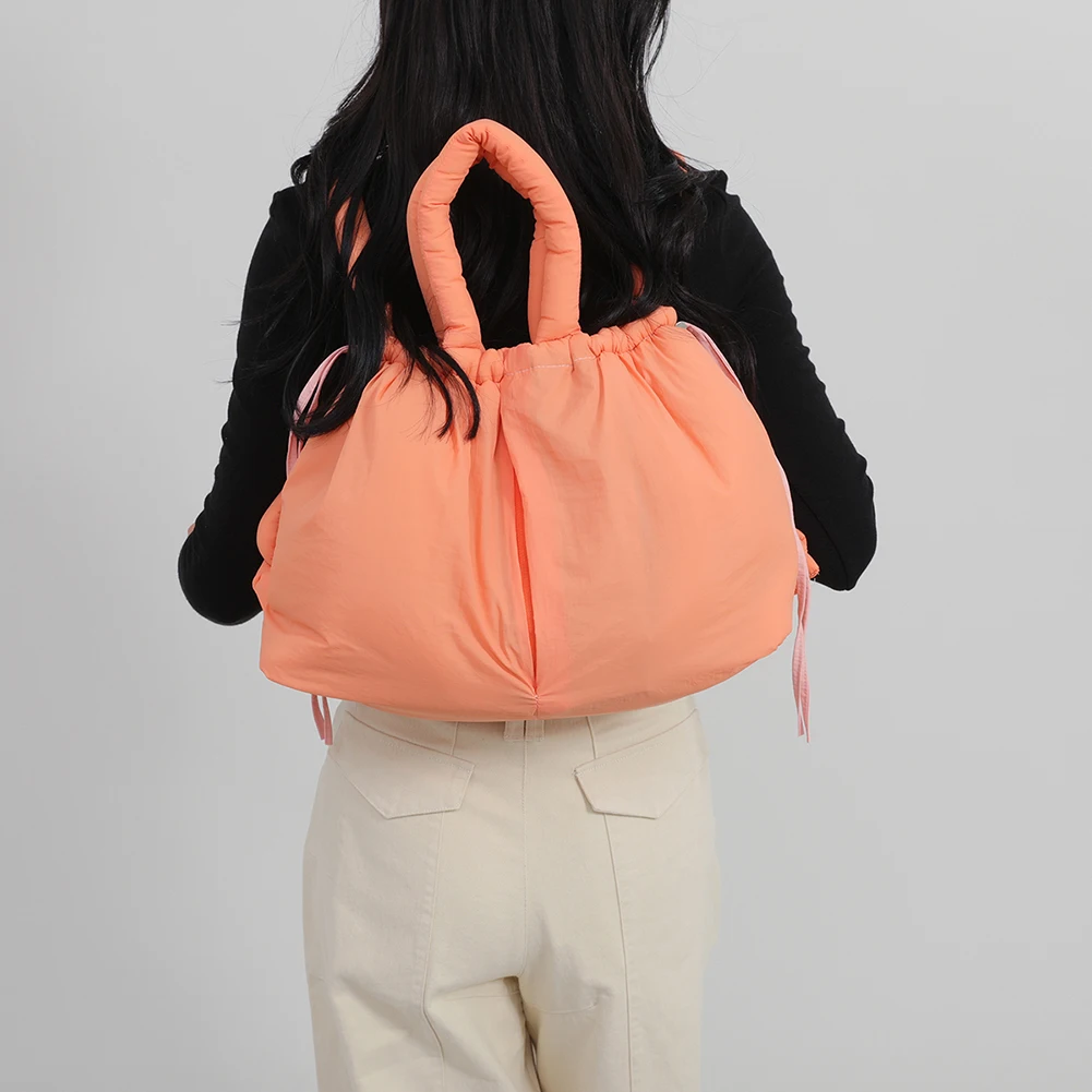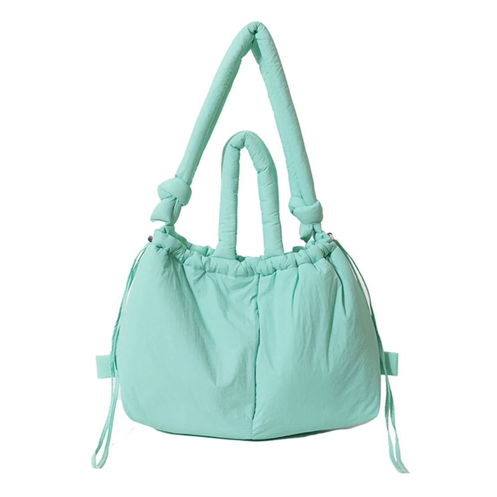 Puffer Tote Bag for Women Adjustable Strap Shoulder Bag Nylon Solid Backpack Large Capacity Puffy Purse for Shopping Travel