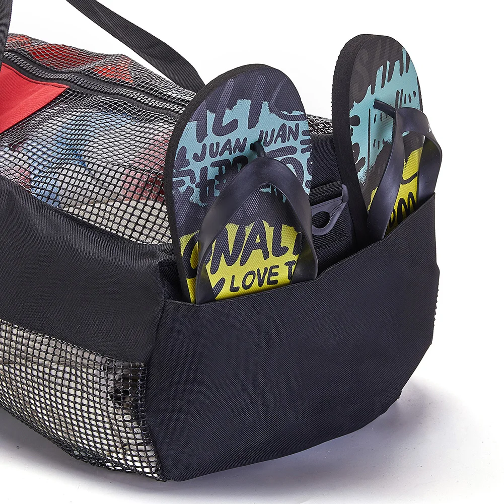 3. With Shoulder Strap: The mesh dive beach bag features a versatile design with adjustable and detachable shoulder straps, allowing you to carry it comfortably as a handbag or sling it over your shoulder for easy transportation.