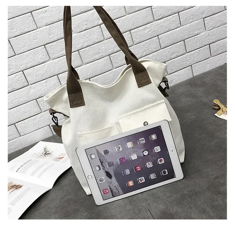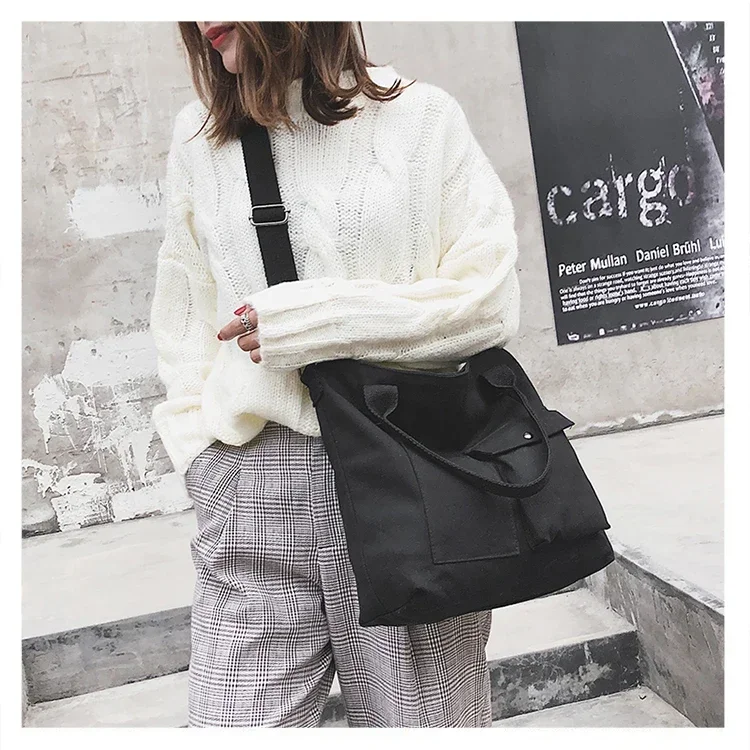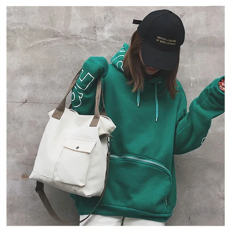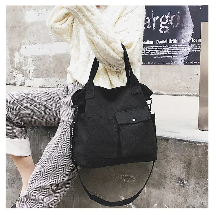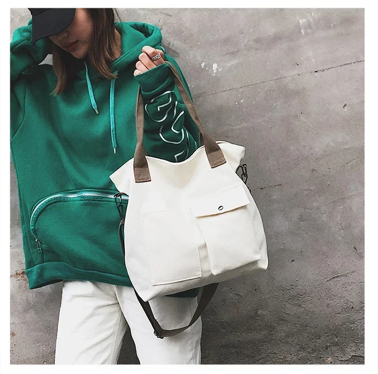 Fashion Canvas Bags students Handbag Shoulder Bag Large Capacity Solid Color Totes Shopper Bag Casual Female Cross Body Bag 2024