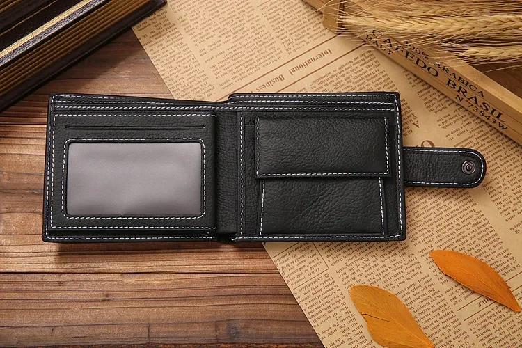 Genuine Leather Men Wallets Premium Product Real Cowhide Wallets for Man Short Black Walet Portefeuille Homme