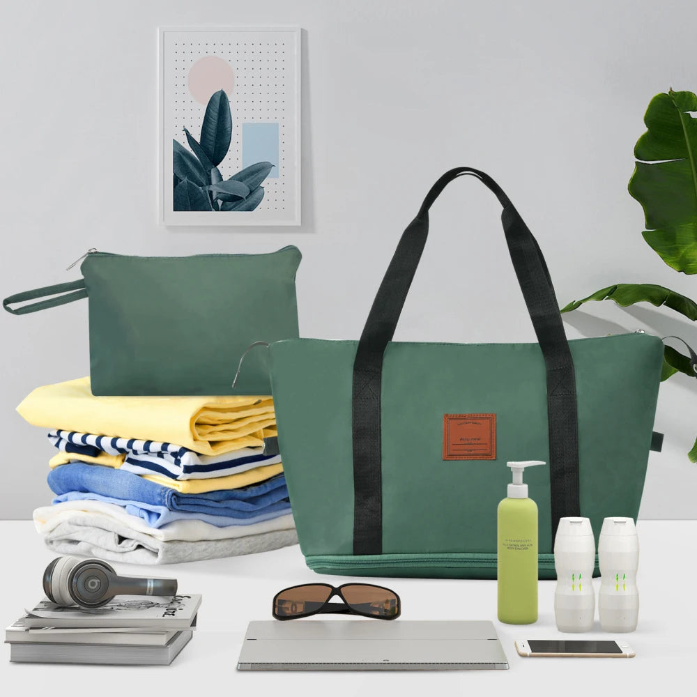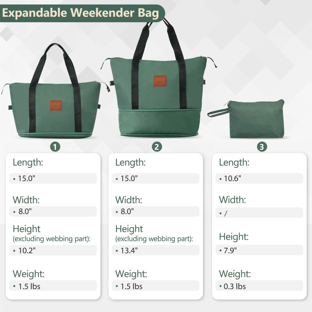 - Expandable weekender travel bag: Perfect for short getaways. this compact weekender bag offers up to 30% more packing space when you need it. Crafted from durable, water-resistant fabric, it features a trolley sleeve and secure zippered pocket for added convenience. Lightweight, practical, and stylish—your perfect travel companion.
