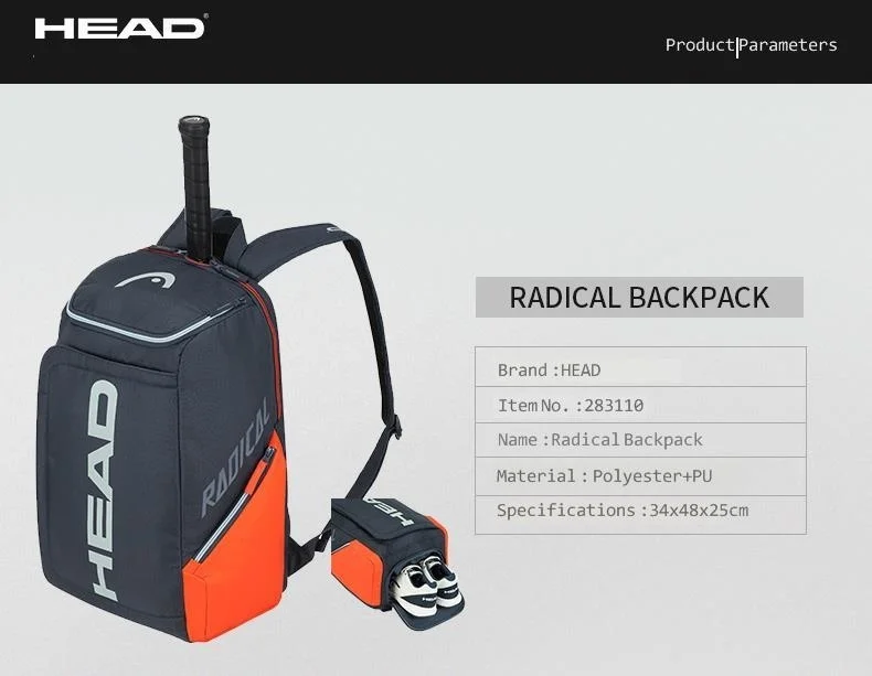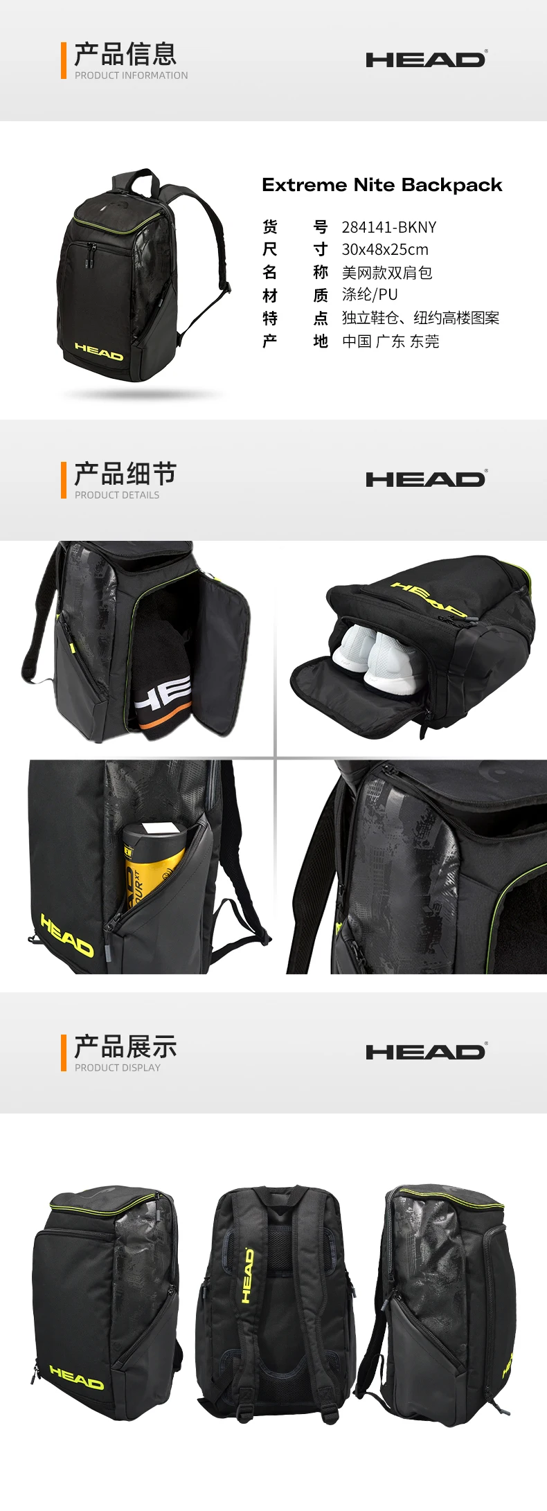 HEAD Tennis Backpack Bag 2 Racquets Tennis Rackets Backpack Tennis Bag Sports Tenis Raquete Bag Male Tenis Bag Padel Badminton