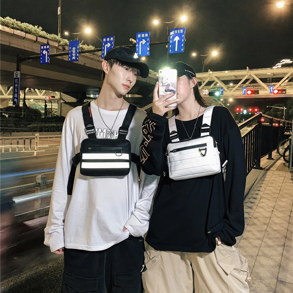 Hip Hop Vest Bag Men Women Oxford Cloth Waistcoat Streetwear Shoulder Belt Pack Travel Purse Phone Pouch Pocket