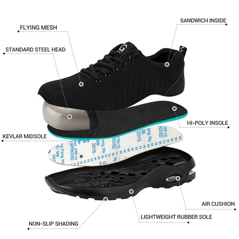 Industrial Steel Toe Safety Shoes Mens Lightweight Breathable Work Boots Anti-smash Puncture Resistant Construction Work Shoes