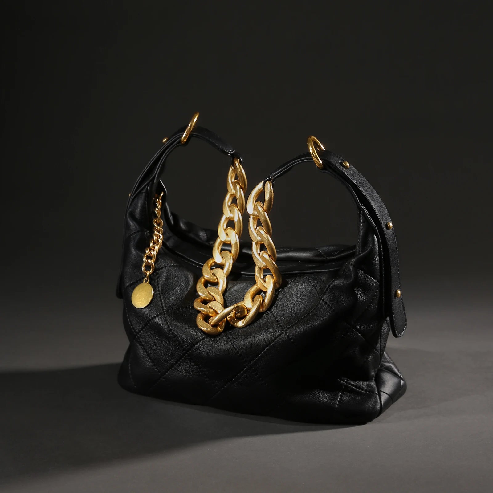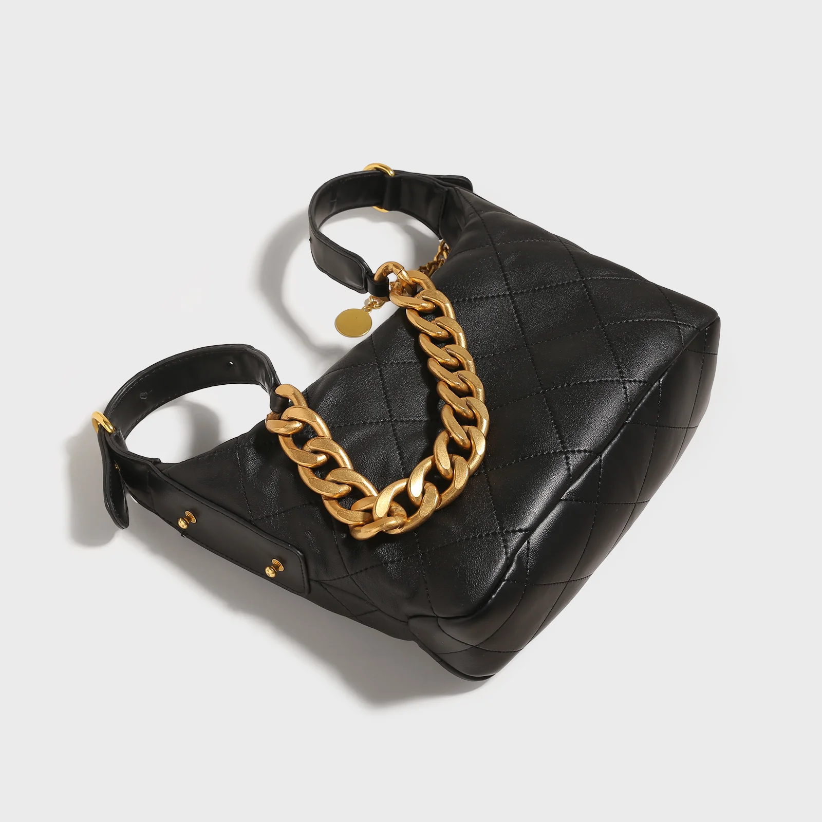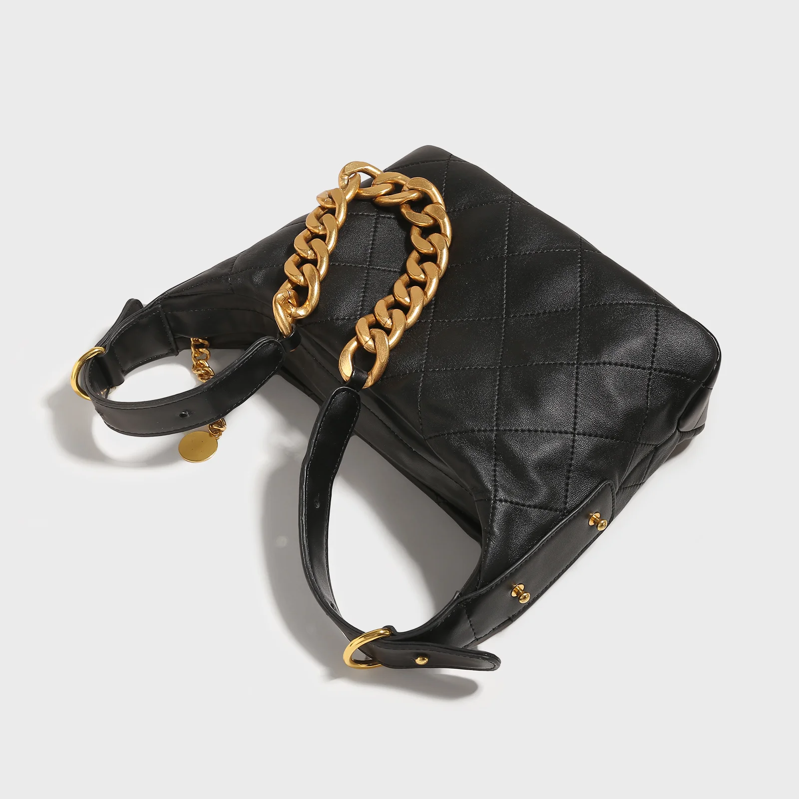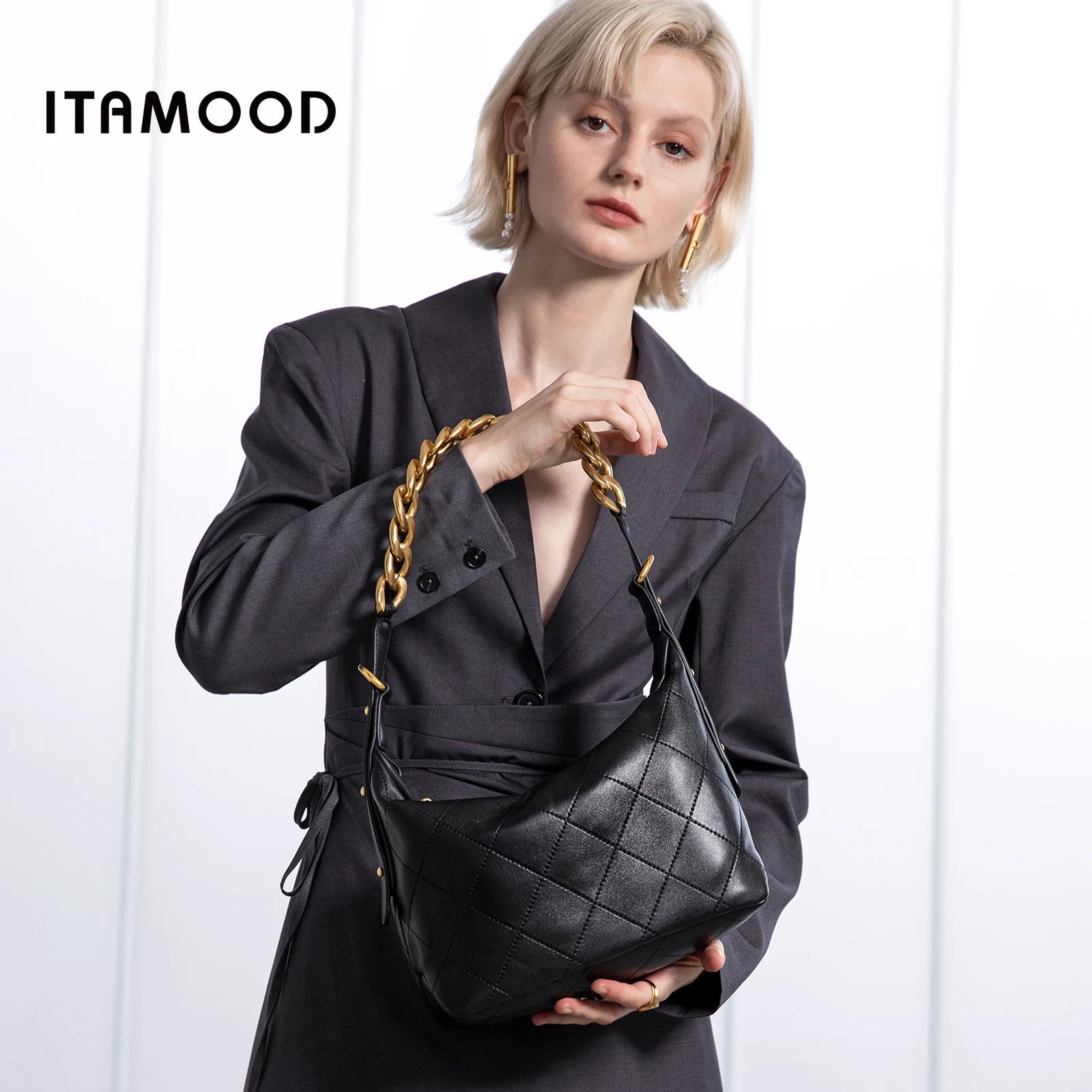 ITAMOOD Genuine Leather Shoulder Bag for Christmas Gift Luxury Branded Quilted Tote Crossbody Bag With Gold Color Chain Strap