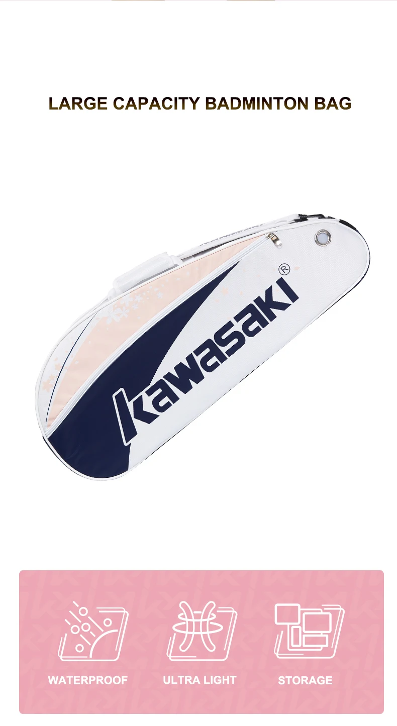 Kawasaki 2024 New Badminton Bag Max For 3 Rackets With Shoes Compartment Shuttlecock Racket Sports Bag For Women