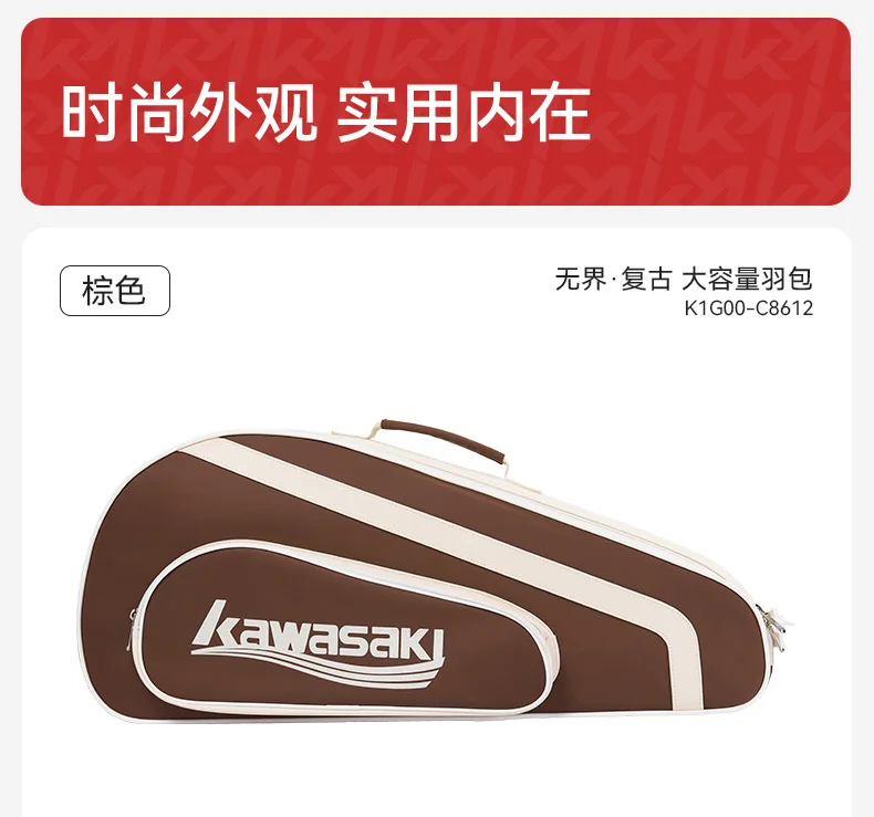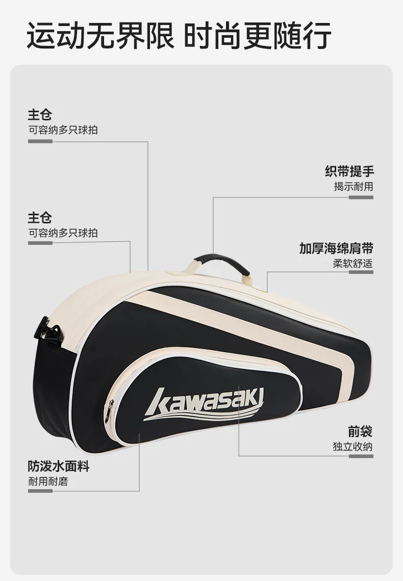 Kawasaki Six-Pack Large Capacity Badminton Bag 2025 Brand New Waterproof Portable raqueteira tennis Bag For Men Women K1G00-C861