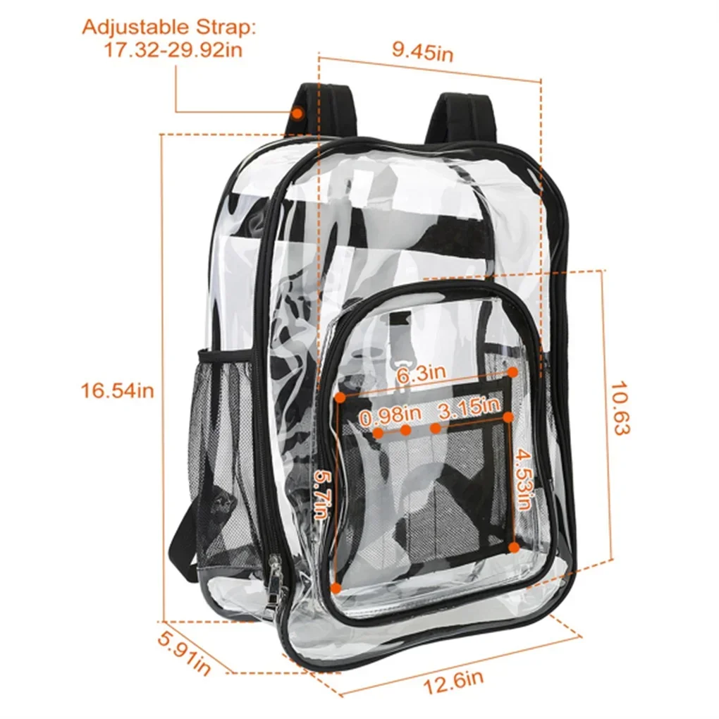 Wide Range of Uses: Perfect to be used as clear lunch bag, diaper bag, beach bag, nurse bag, transparent backpack for office workers, sport events, concerts at colleges and workplace.