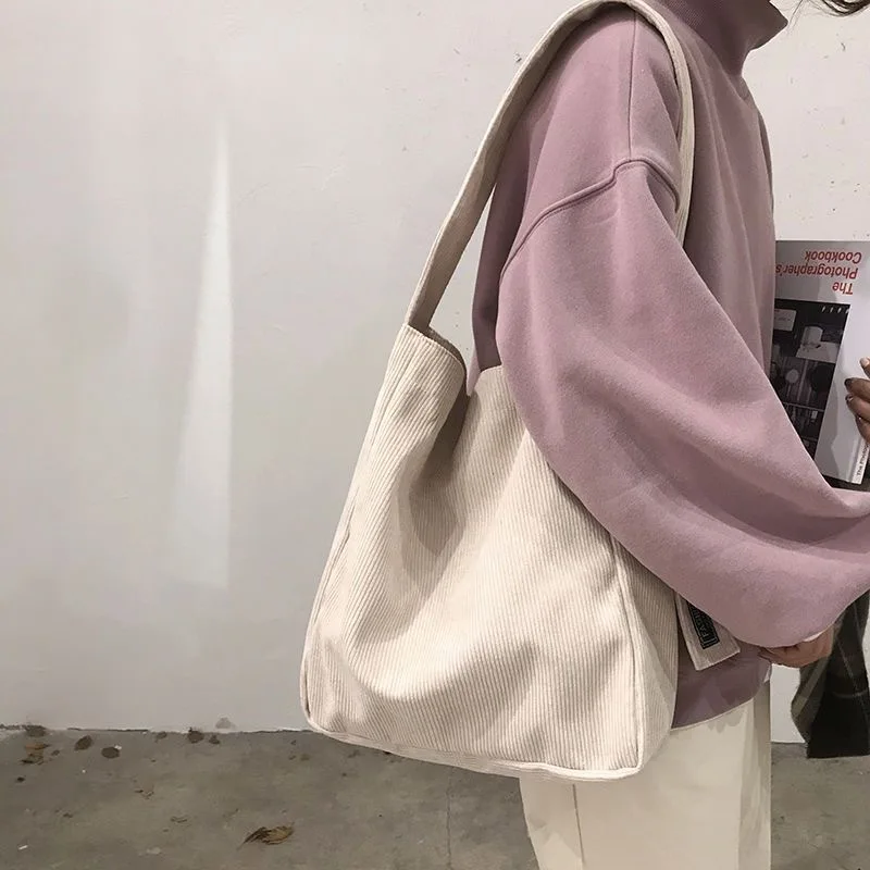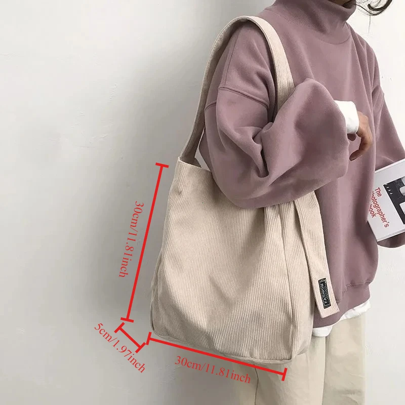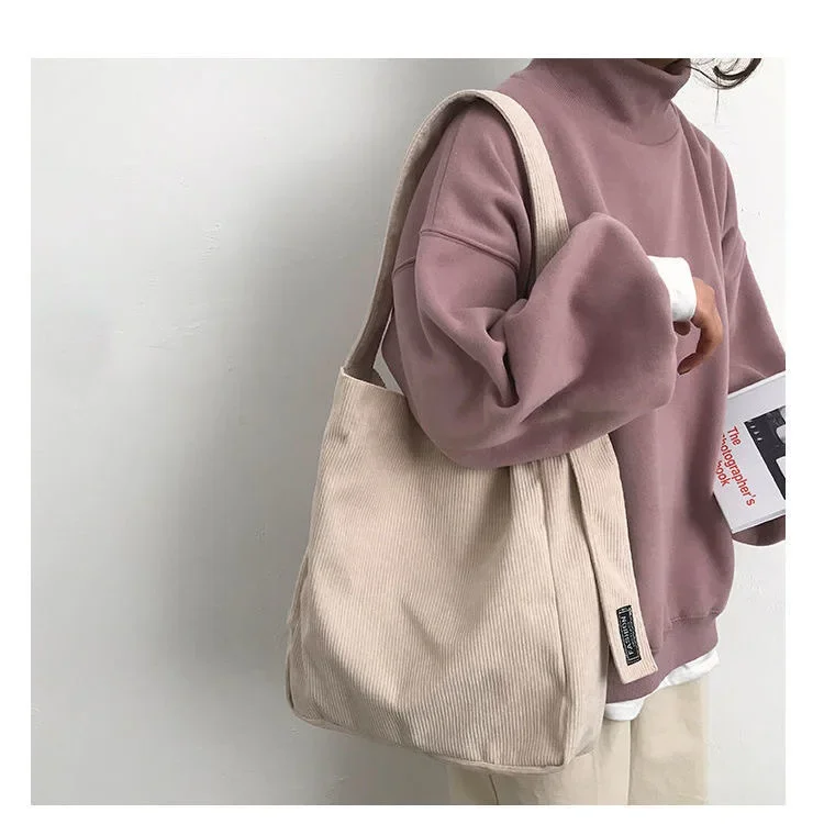 Large Corduroy Shoulder Shopper Bag for Women Cotton Cloth Fashion Canvas Tote Shopping Bags Woman Handbags Reusable Travel Bags