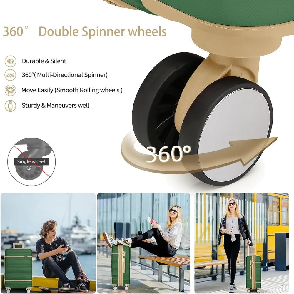 - 【Silent & Smooth Multi-directional Spinner Wheels】Luggage equipped with 360° degree multi-directional 4 double spinner wheels offer effortless mobility in any direction. The silent feature ensures that the wheels operate quietly, eliminating any unnecessary noise during transportation.