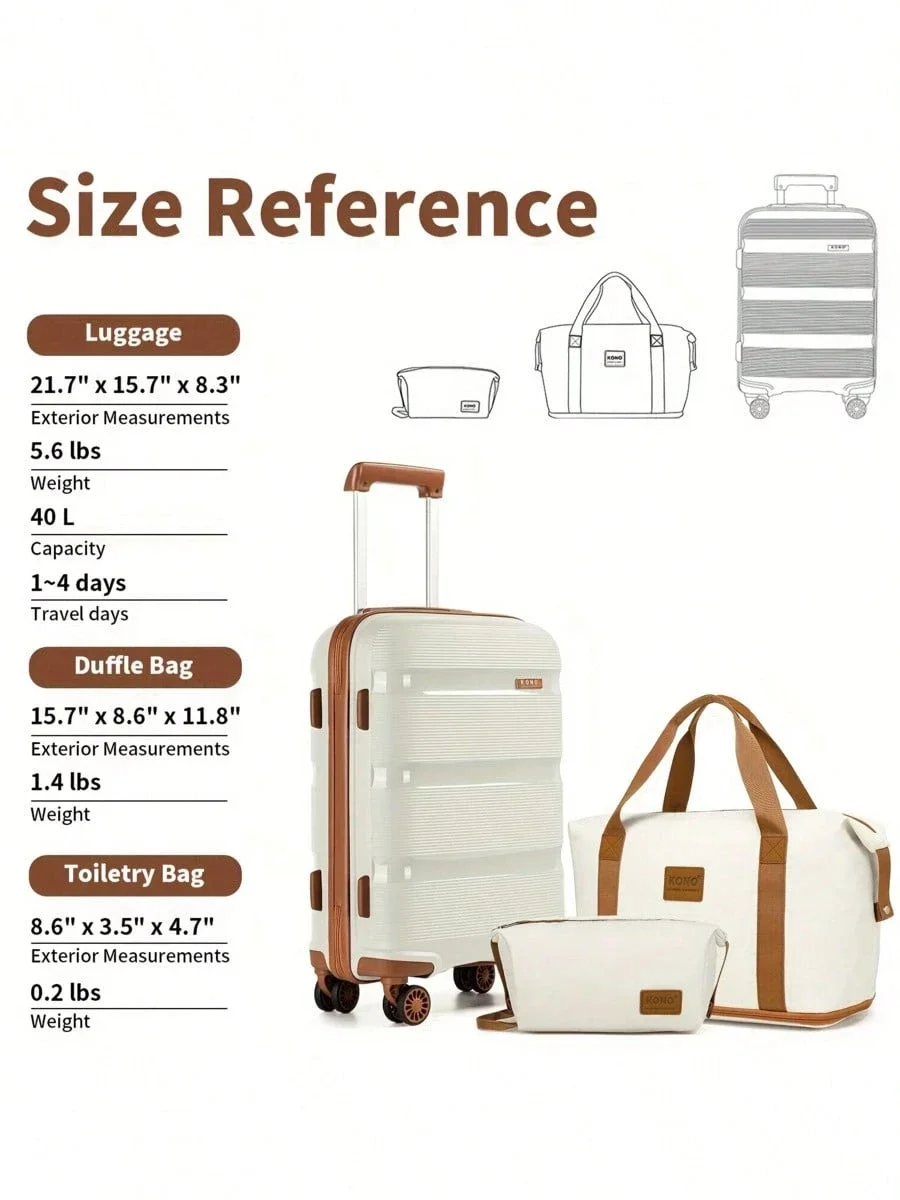 3-Piece Set: Includes carry-on, larger suitcases, and toiletry bag for organized travel.