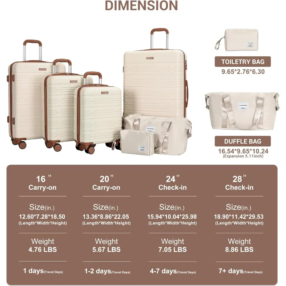 Luggage Sets 4 Piece,Suitcases with Double Spinner Wheels and TSA Lock,Hardcase 6 set Luggage with Travel Duffle Bag,Carry On Lu