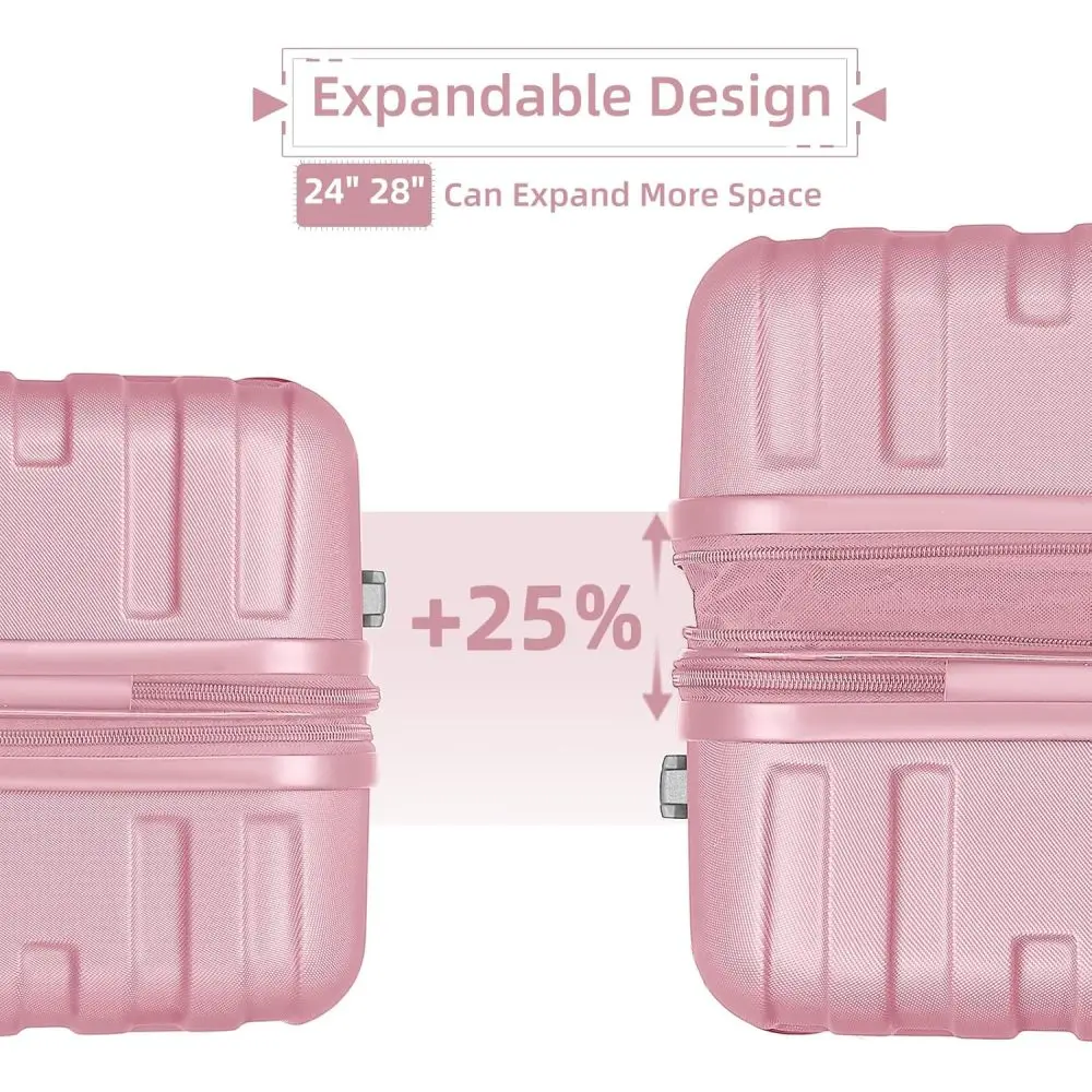 - Expandable Suitcase Sets: 6 piece set offers 18"/20" carry on suitcase, a 24'' checked suitcase, a 28'' large luggage, a weekender travel bag and a toiletry bag. Expand the luggage capacity by 25% with smooth and durable expandable zipper (Only 24/28inch)