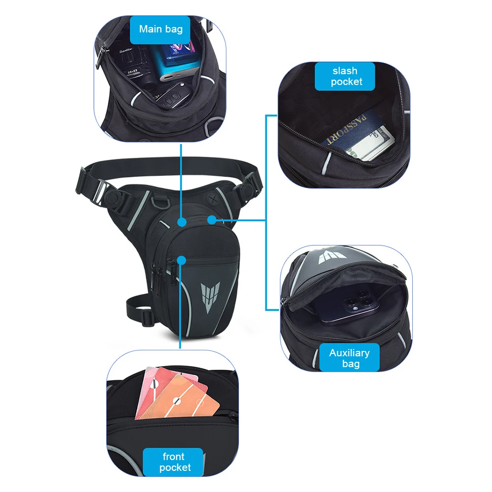 Men Motorcycle Leg Side Bag Waterproof Motorbike Thigh Belt Bag Multifunctional Motorcycle Hip Waist Bag Outdoor Sports Ride Bag