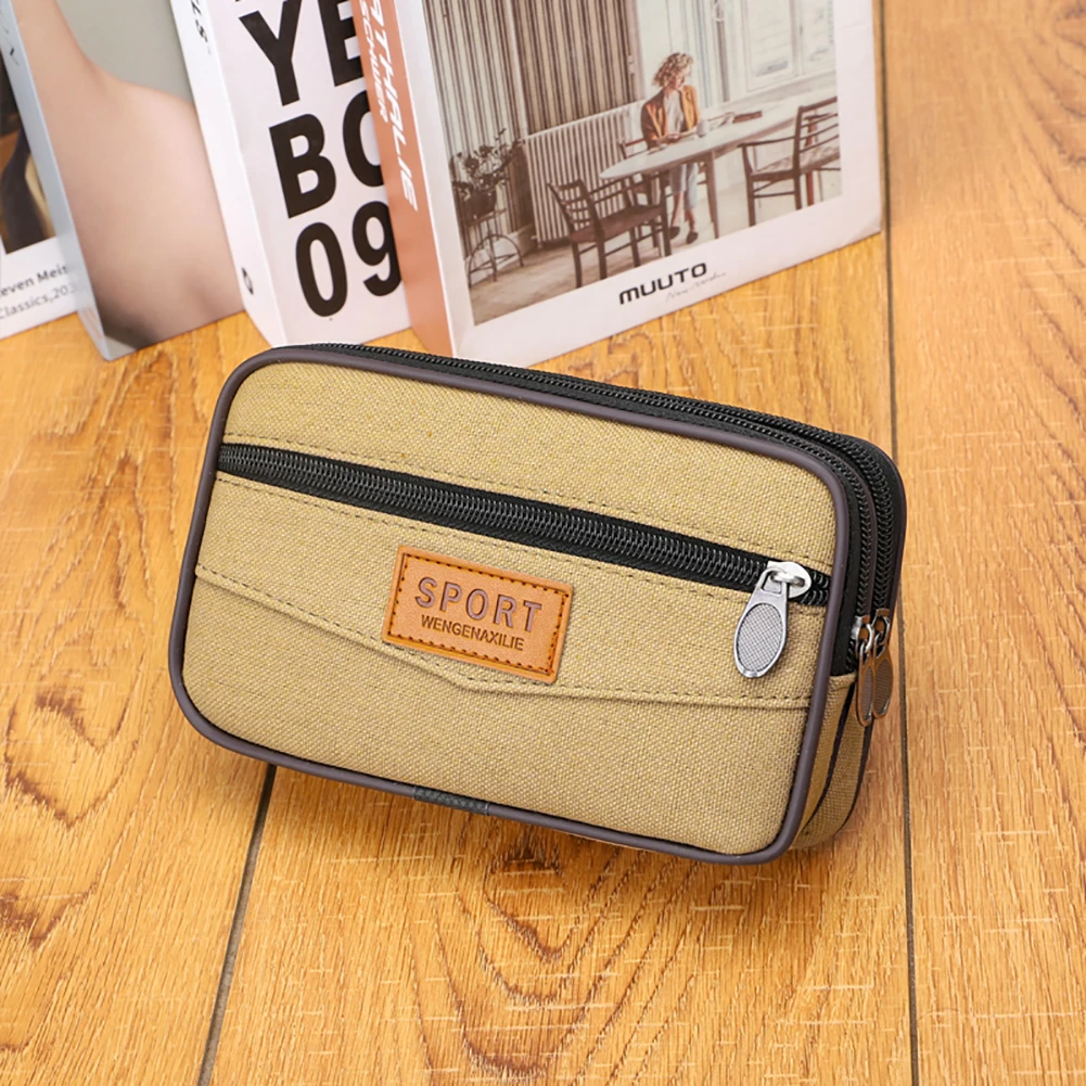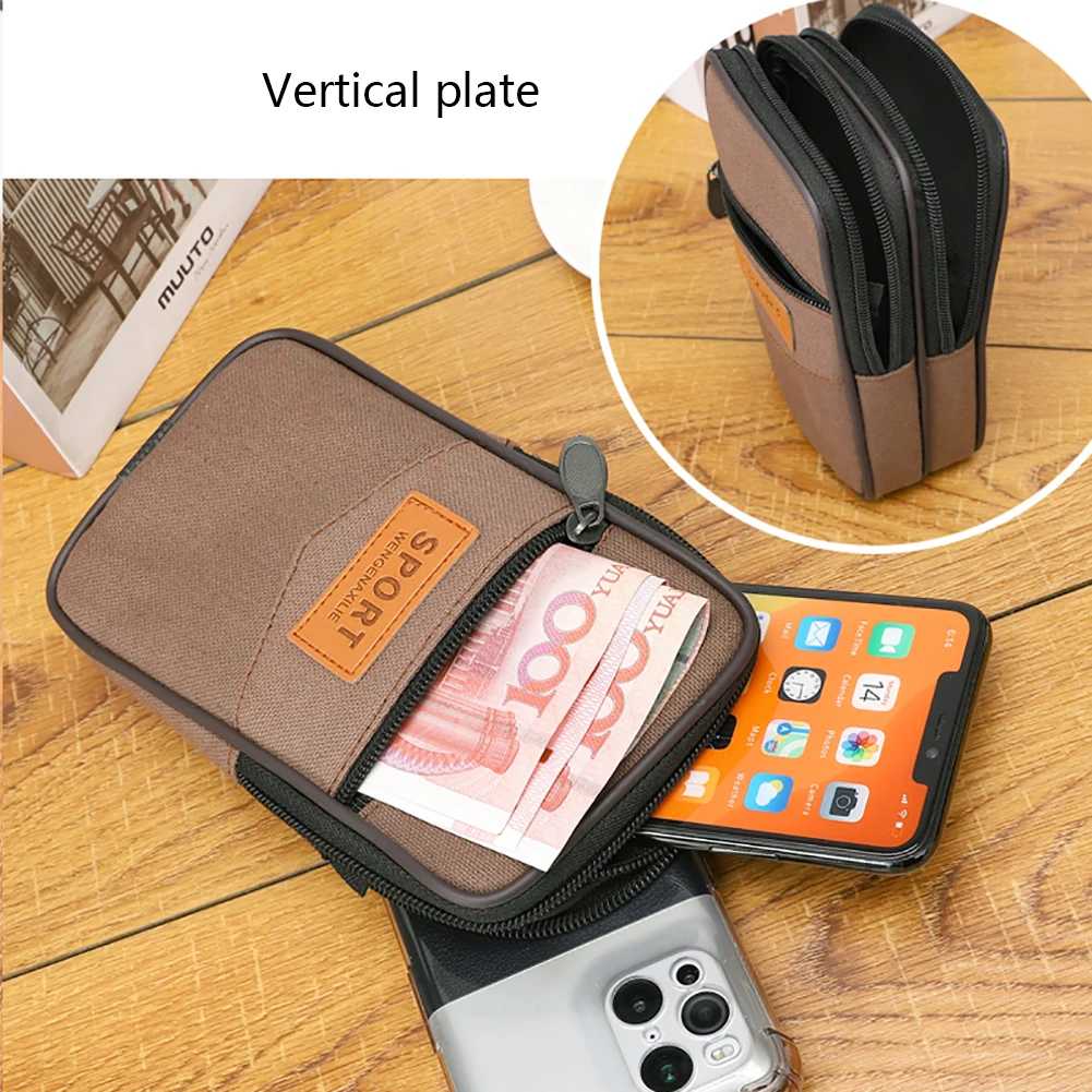 Men Outdoor Sports Waist Bag Fashion Canvas Slim Coin Purse with Multi Pockets Zipper Coin Purse Coin Pocket Bag for Coins for Best Gift