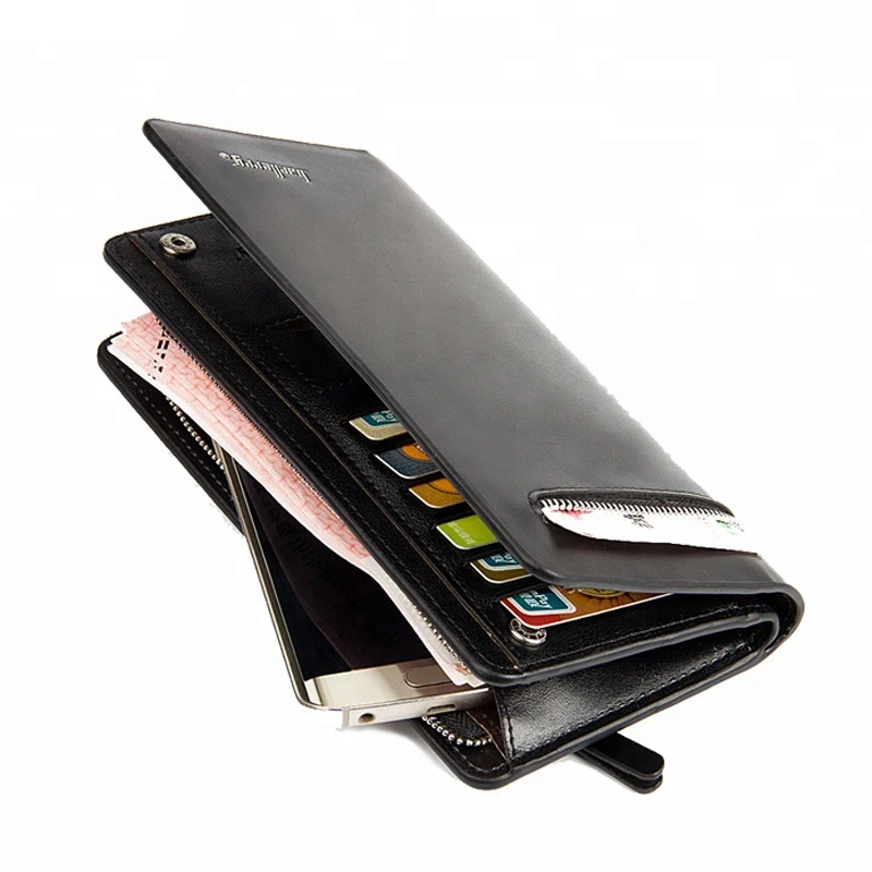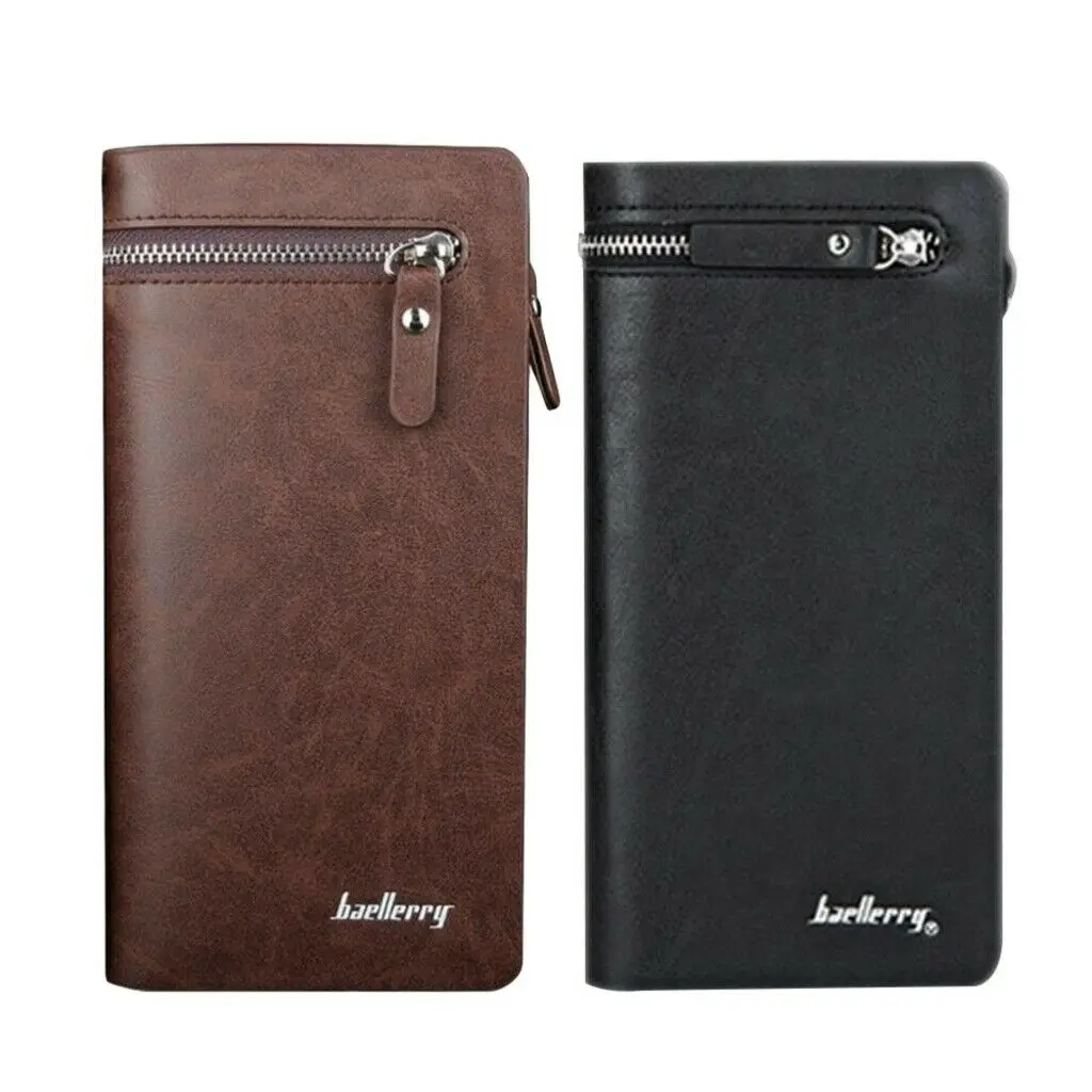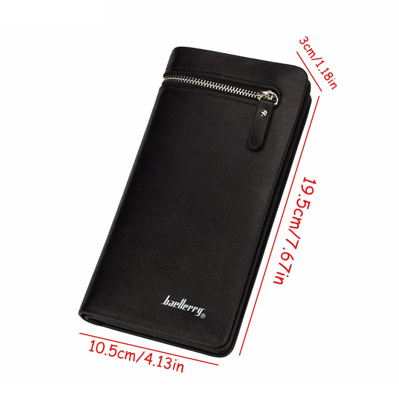 Men's Long Wallet Zipper Around Bifold Purse Simple Business Travel Large Capacity Card Holder Handbag