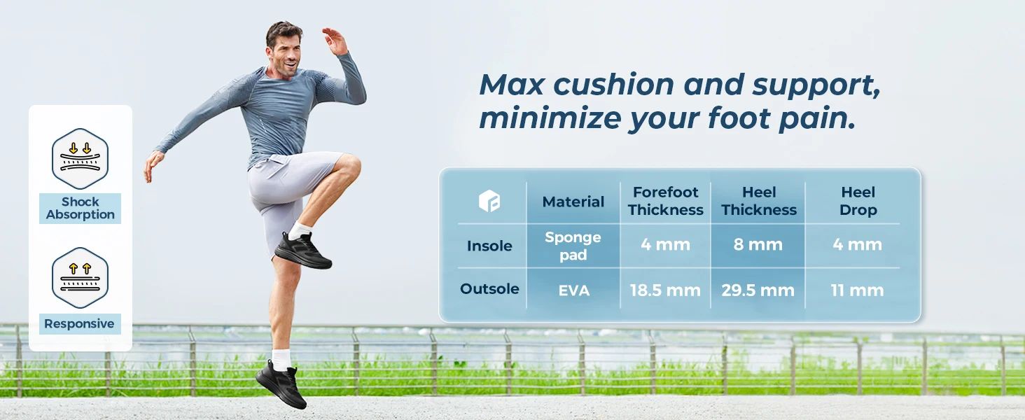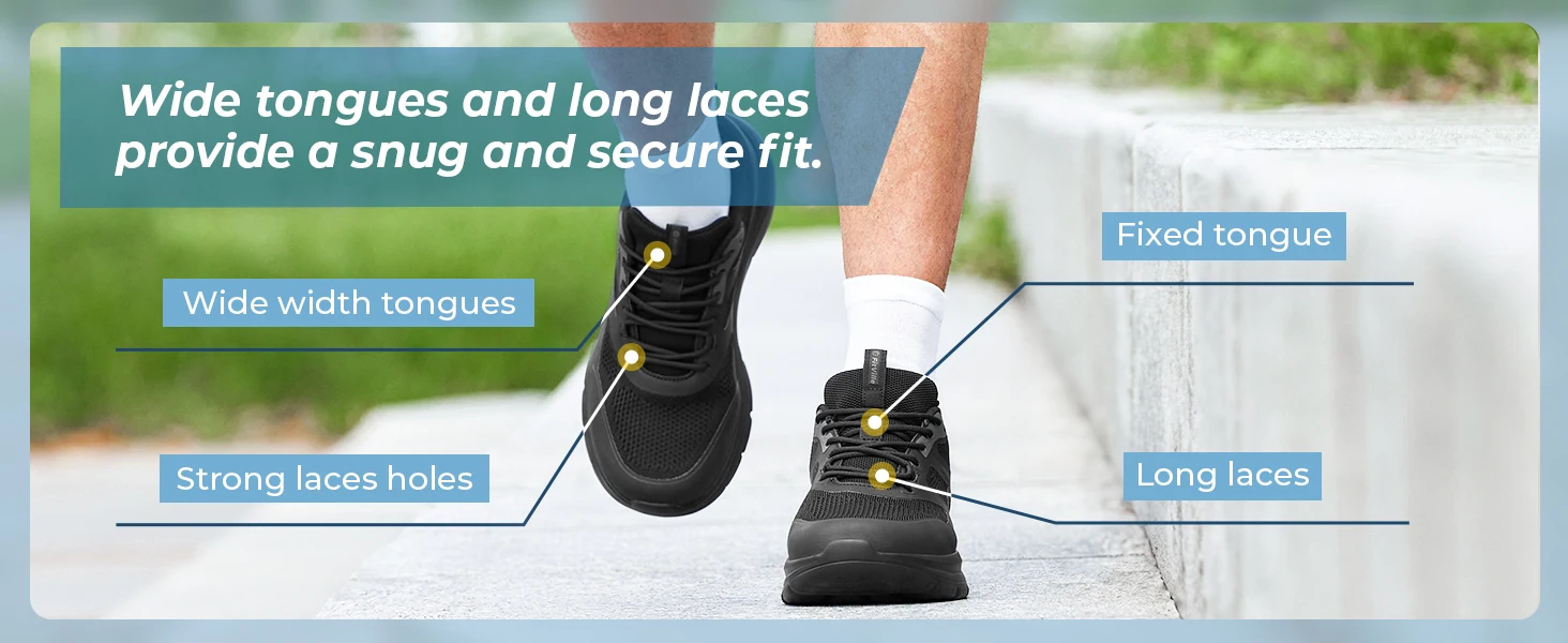 Max Cushioned: The wide walking shoes for men provide maximum cushioning. The flexible outsole have great shocks absorption. The removable insoles are cushioned, not having any pressure on your toes.