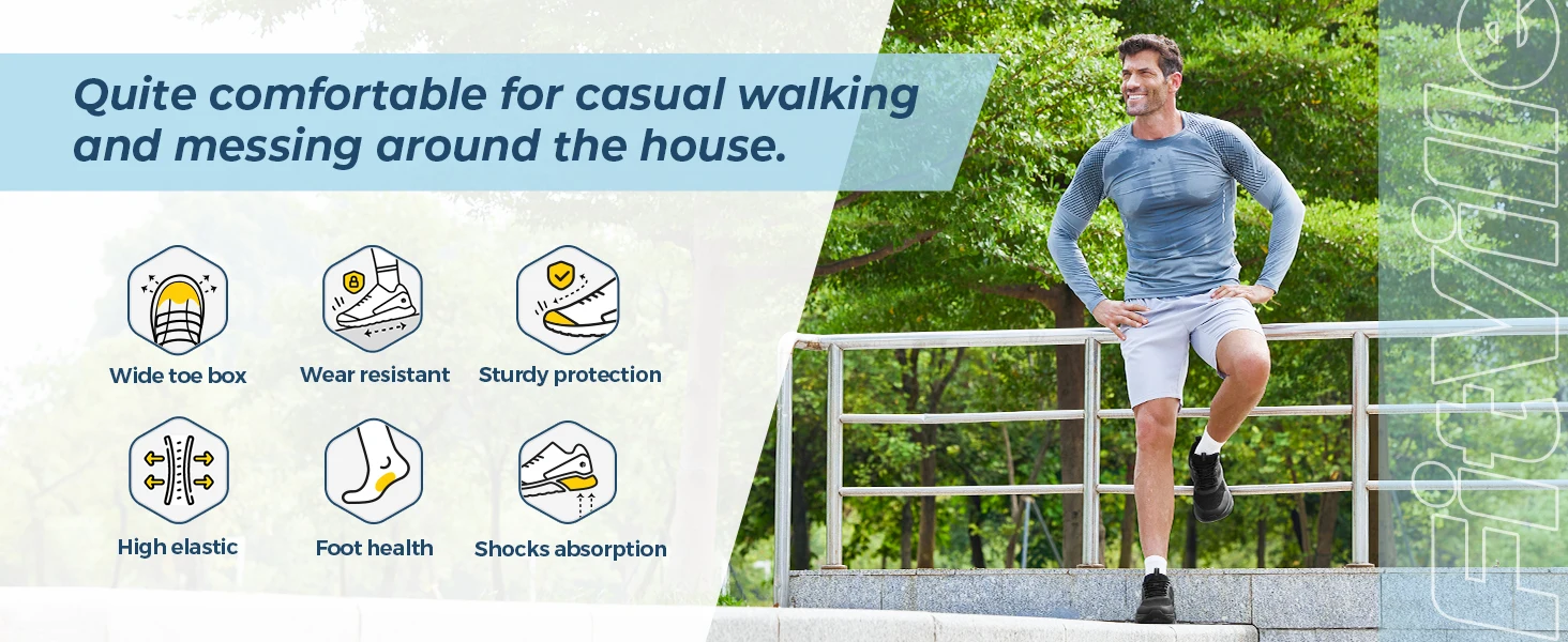 Breathable Upper: The casual walking shoes for men allow the toes to spread out and stay cooler. The soft mesh upper let you walking all-day comfort.