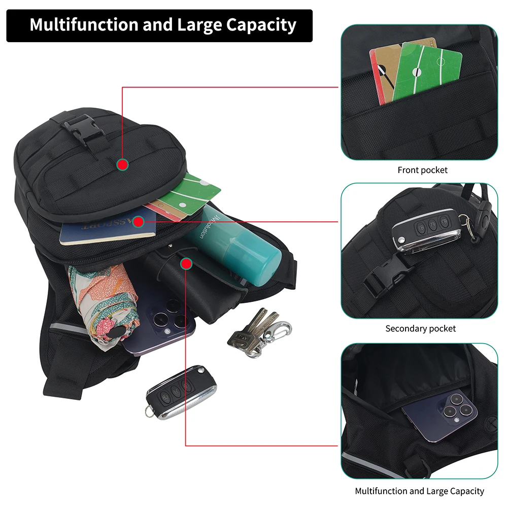 Motorcycle Drop Leg Bag Leg Side Bag Waterproof Motorbike Riding Chest Bag Large Capacity Breathable for Hiking Climbing Fishing Features: