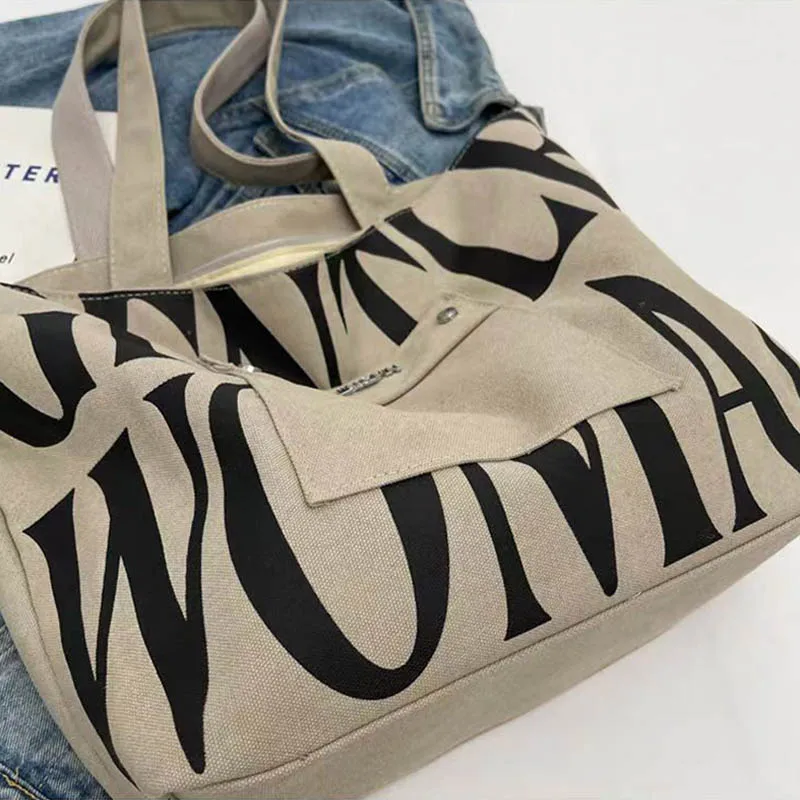New Large capacity Single Shoulder Canvas Bag Stylish Letter Style Student Install books Handbag for Class, Fashion Shopping Bag