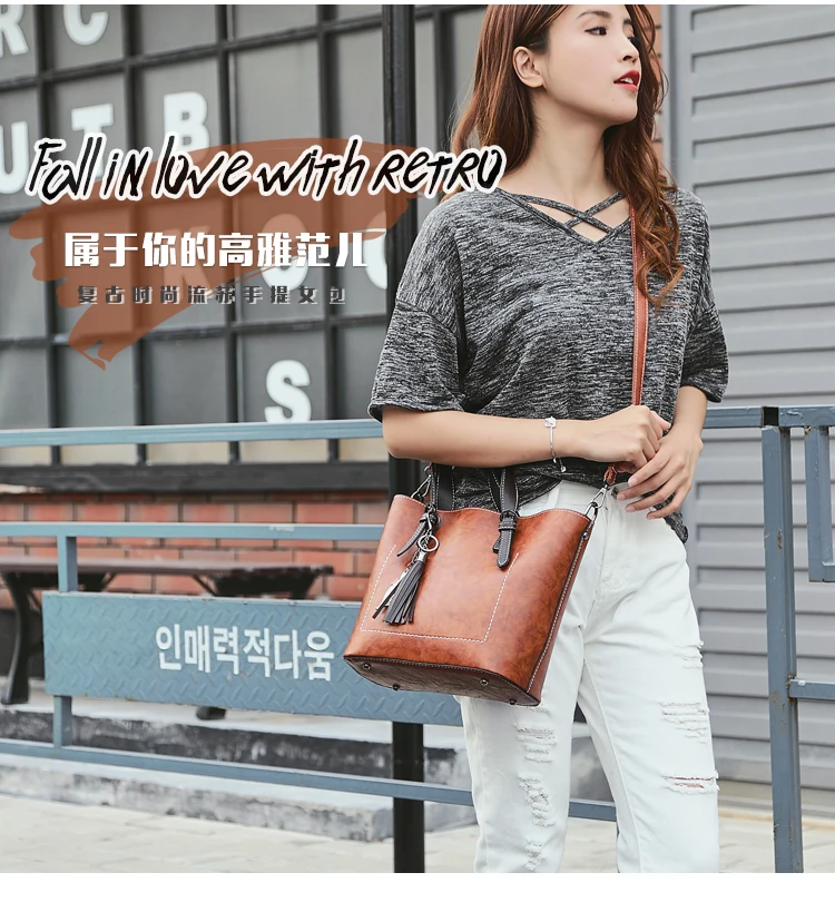 New Women’s Fashionable Handbag – Trendy Korean Bucket Bag with Tassel Pendant, Vintage Shoulder Tote